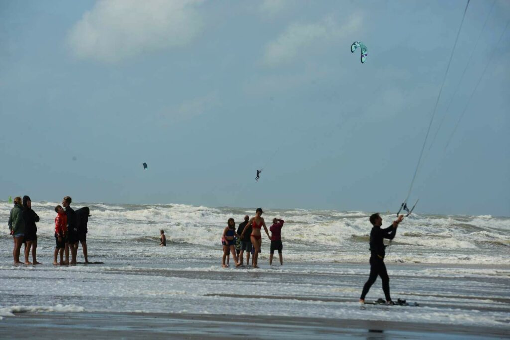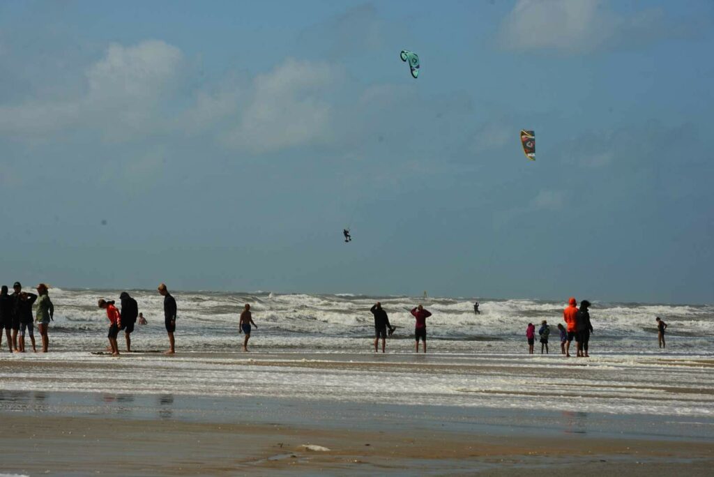 Som det kan ses på de nederste billeder her på siden, var der nogle, der udnyttede blæsevejret til at sætte drager op og til at surfe. I så kraftigt blæsevejr er begge dele risikabelt.