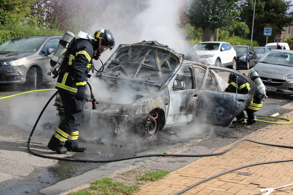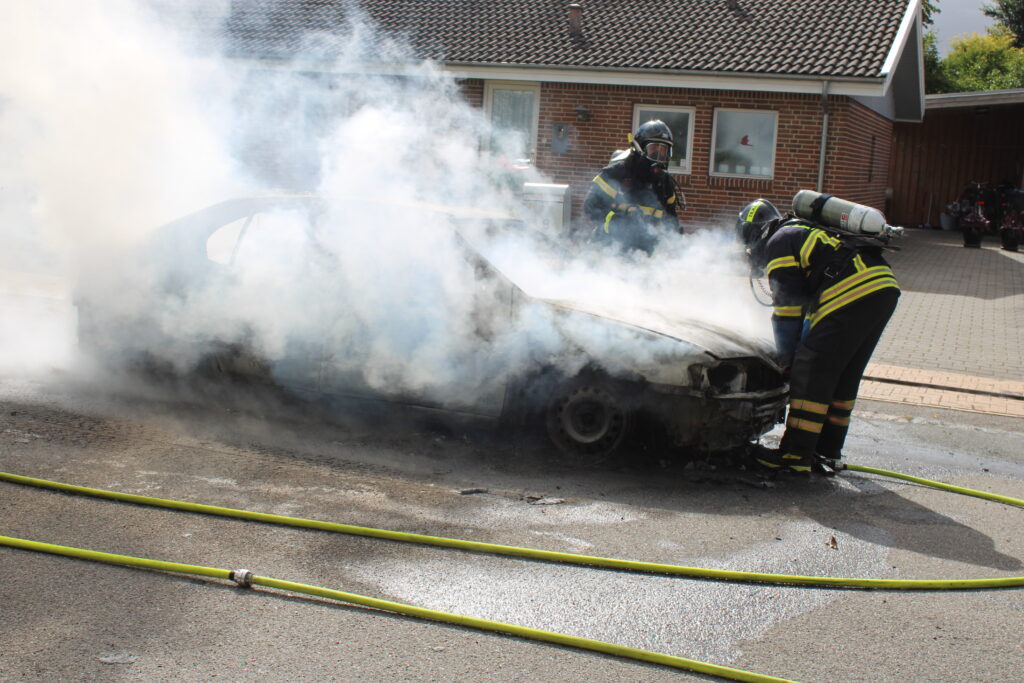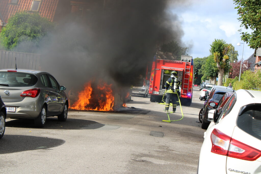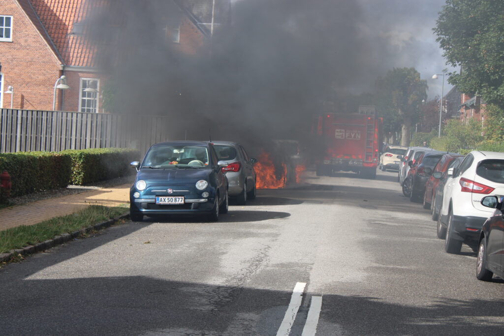 Der udbrød fredag eftermiddag brand i en bil på M. R. Lahnsgade i Odense.