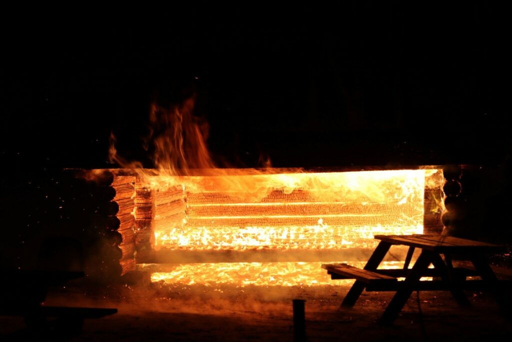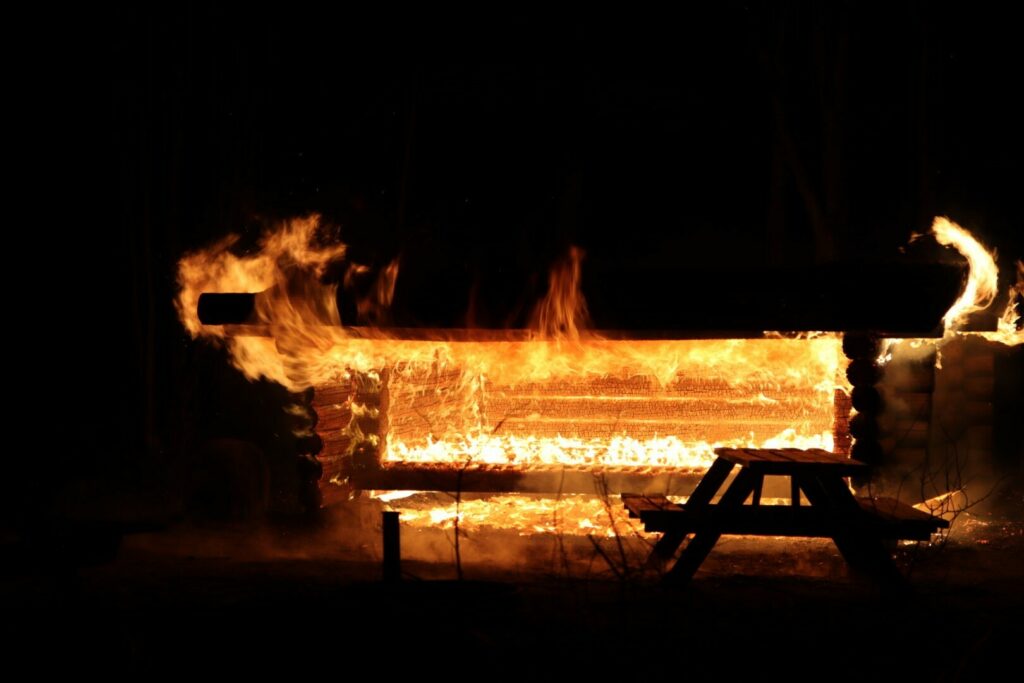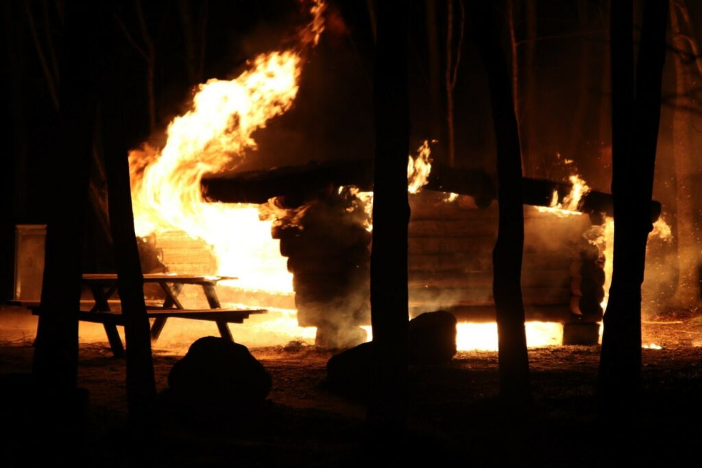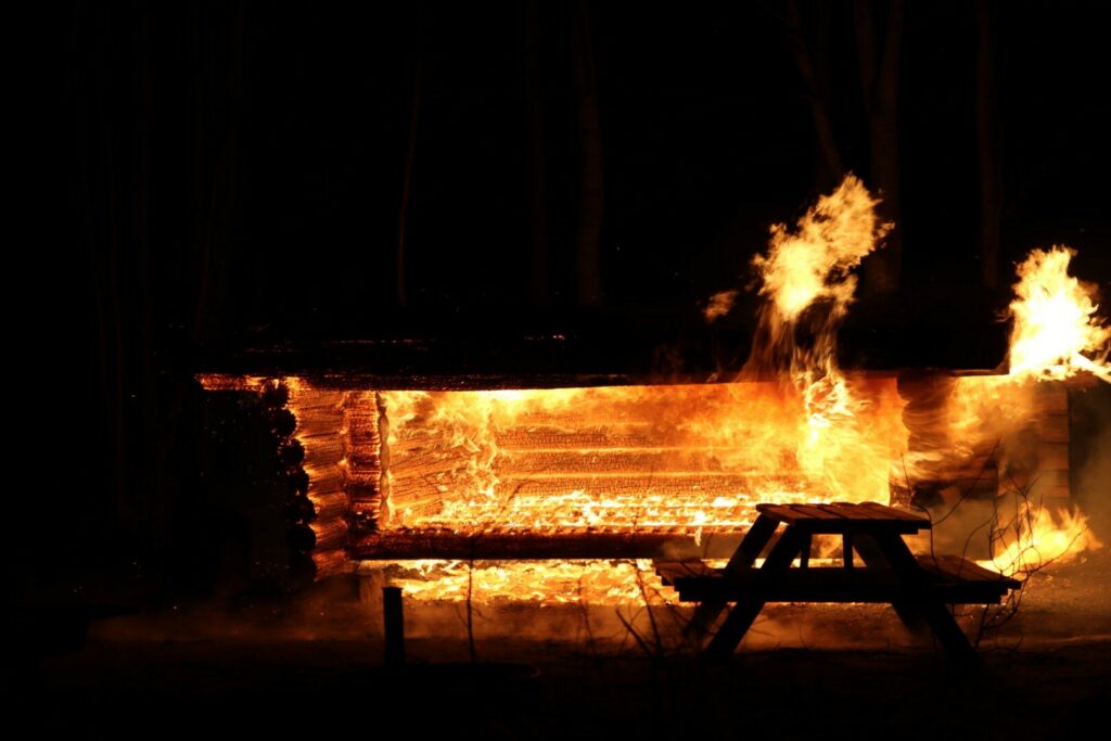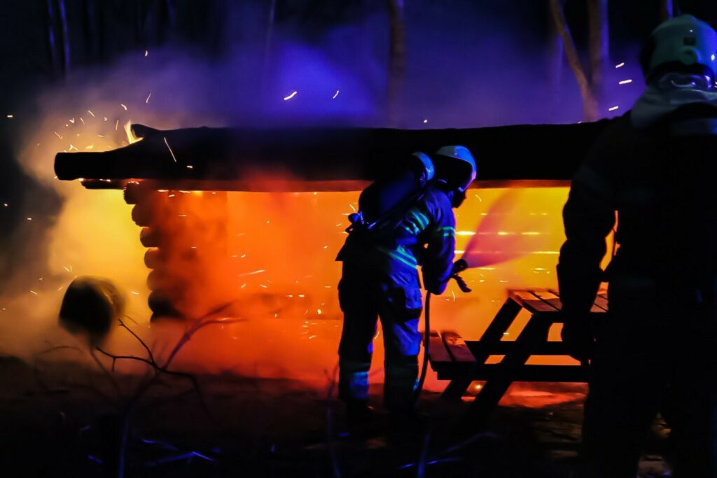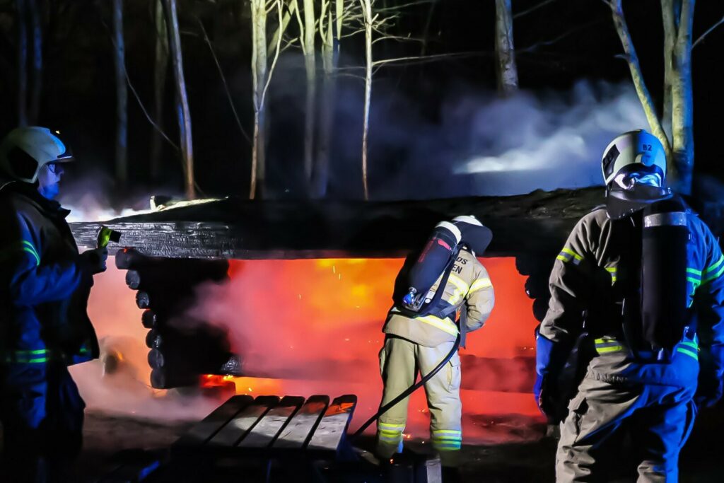 Østjyllands Brandvæsen rykkede sent mandag aften ud til et lille skovområde ved Aabyhøjgården i Aarhus V, hvor en voldsom brand havde taget fat i et shelter.
