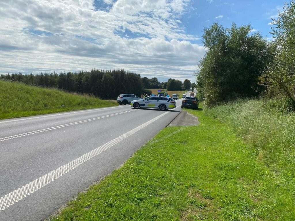 I forbindelse med uheldet har politiet afspærret vejen i begge retninger.