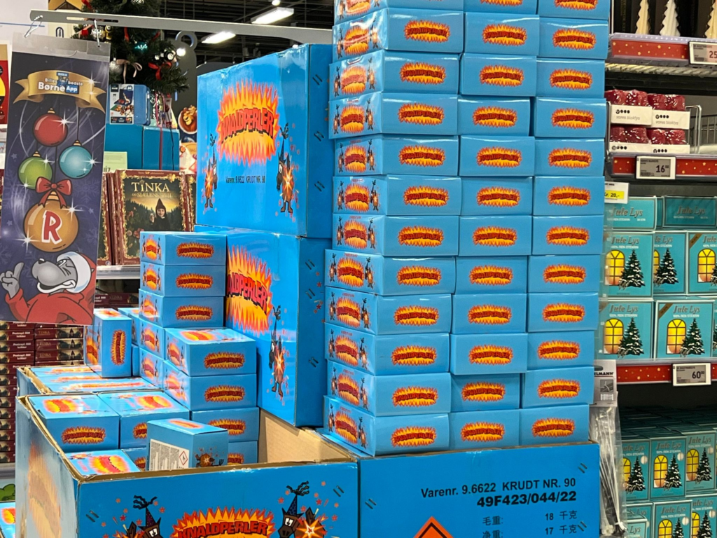 Her får du nemlig en æske knaldperler for den nette sum af 75 kroner. Hvis du for alvor skal knalde løs til nytår og har brug for to æsker, så er prisen minsandten den samme. Hold da ferie!