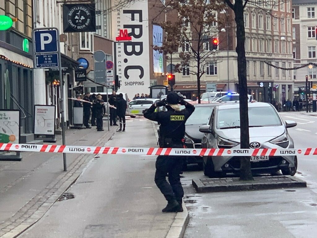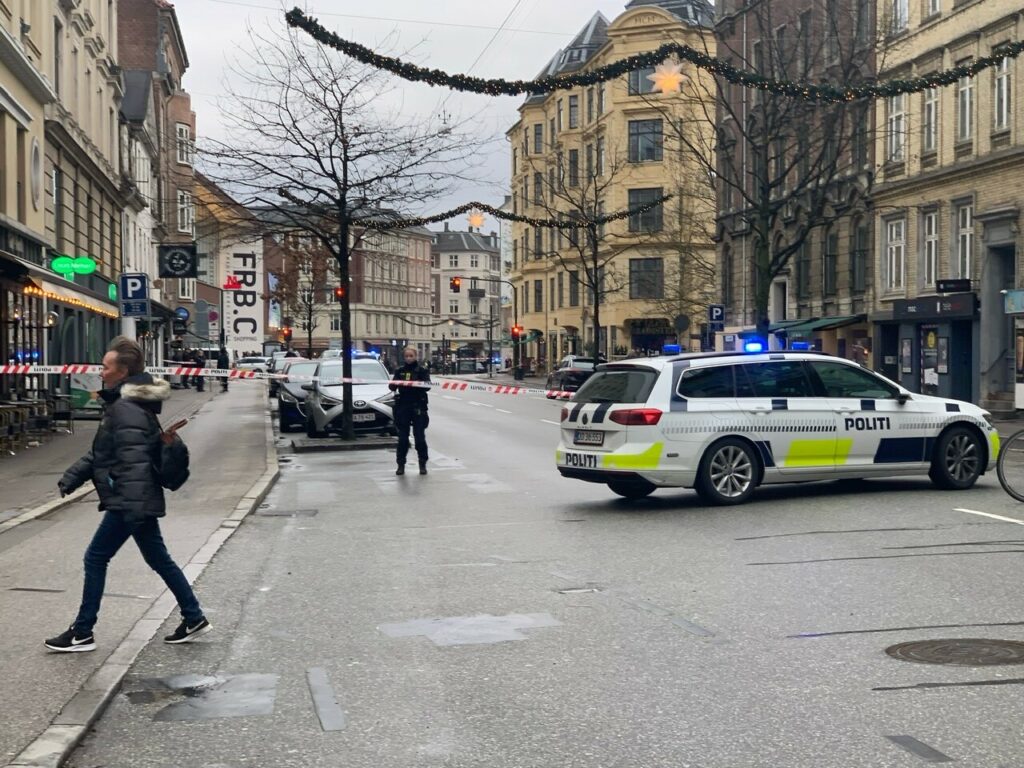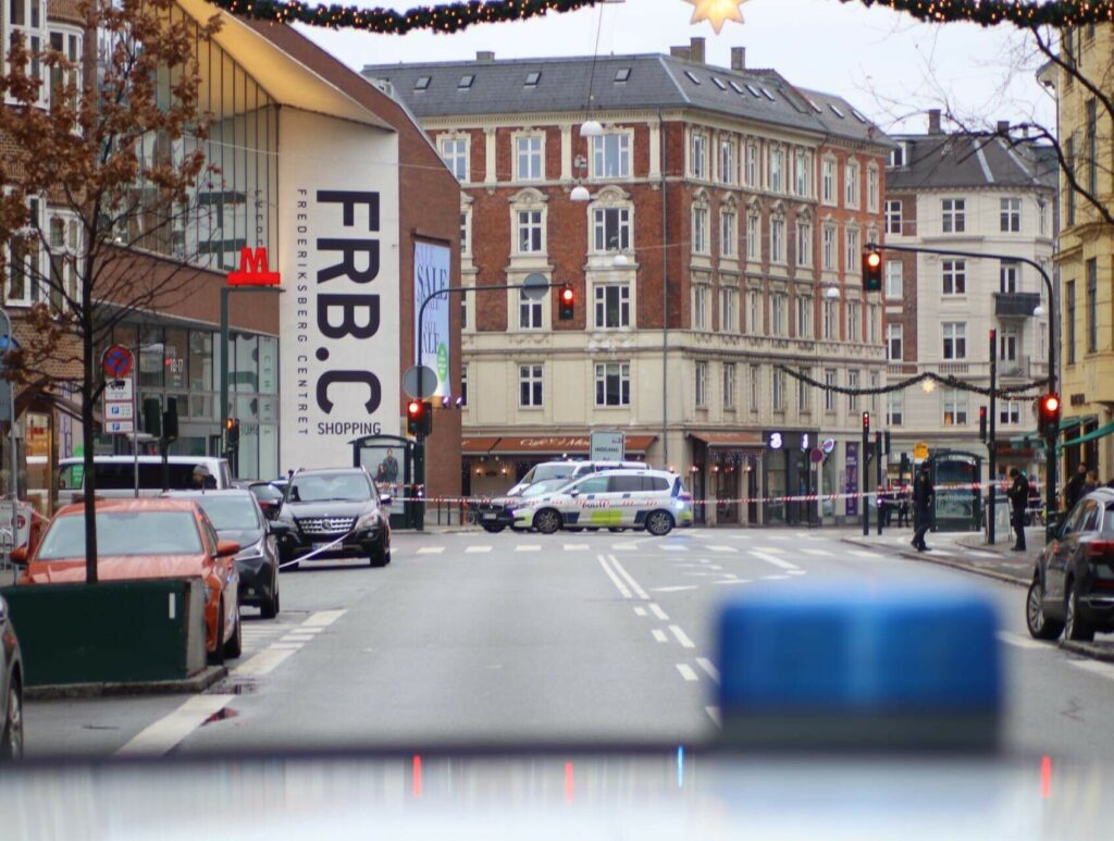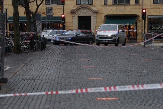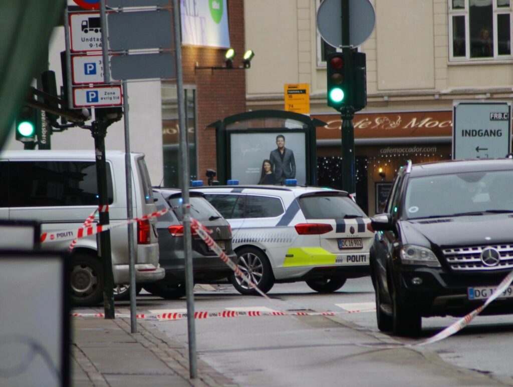 Hele området omkring Falkoner alle, Frederiksberg-centeret, omkringliggende veje og stier er afspærret, ligesom metroen ikke standser ved stationen.