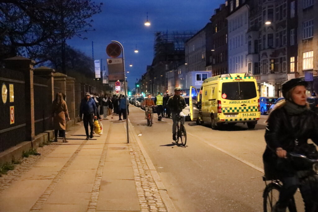 Fredag aften er Københavns politiet og amulanxw tjeneste talstærkt til stede ved Kongens have i København.