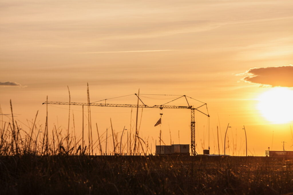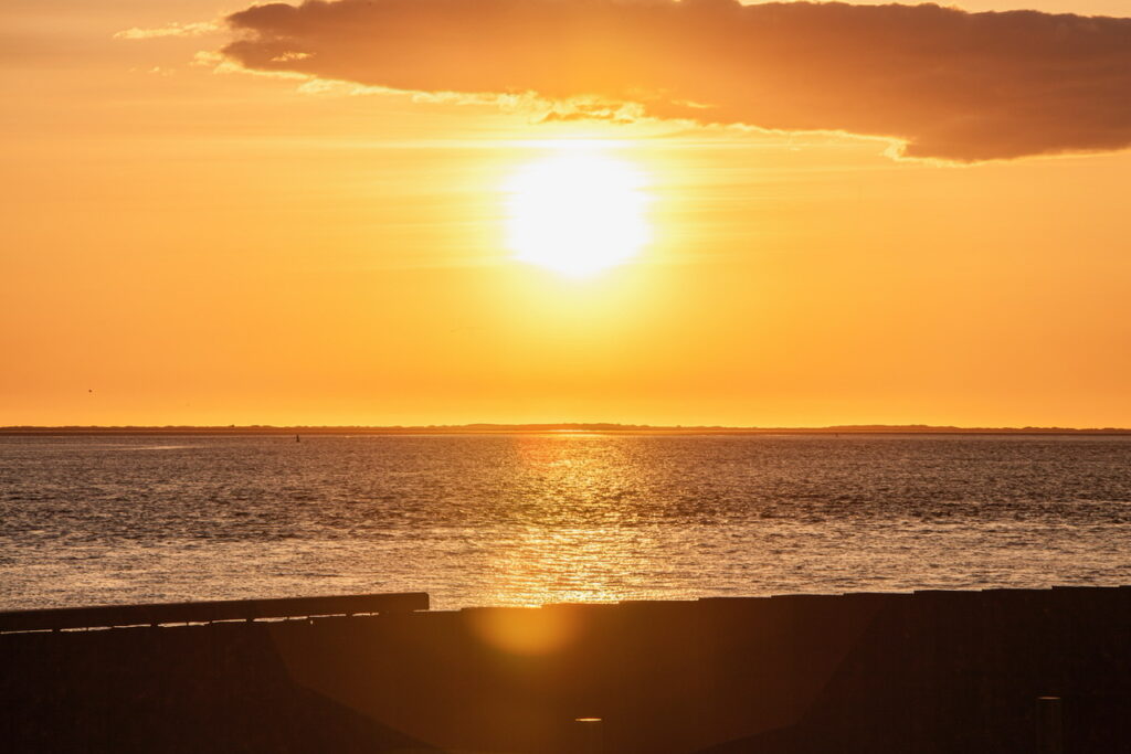 På havet udenfor Esbjerg havn farvede den synkende sol både himmel og hav i en varm orange og gullig kulør.
