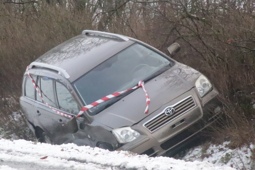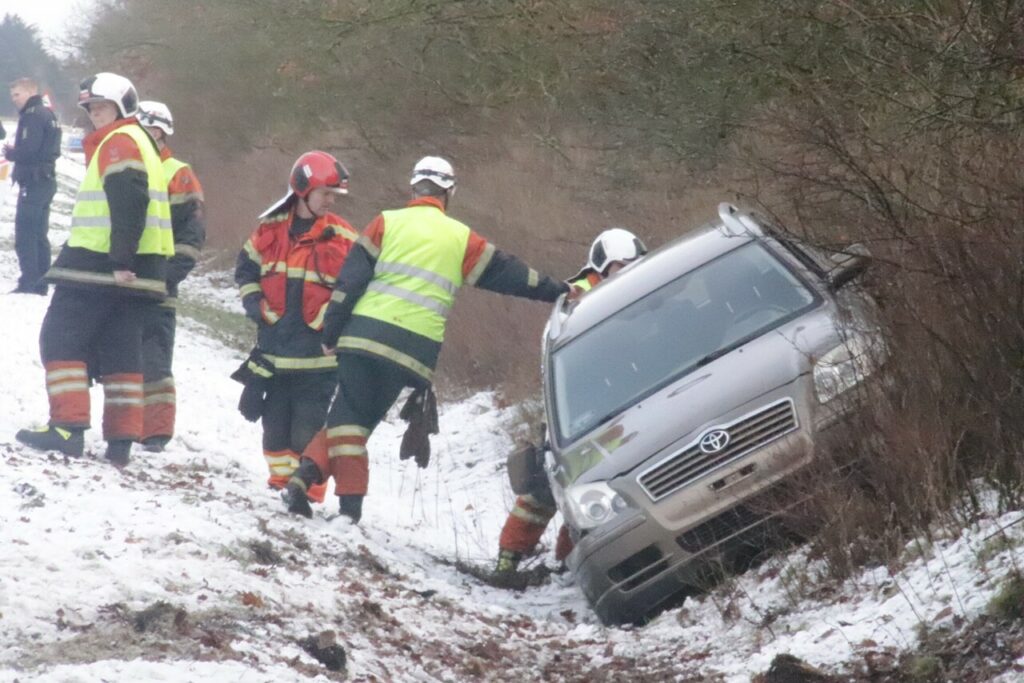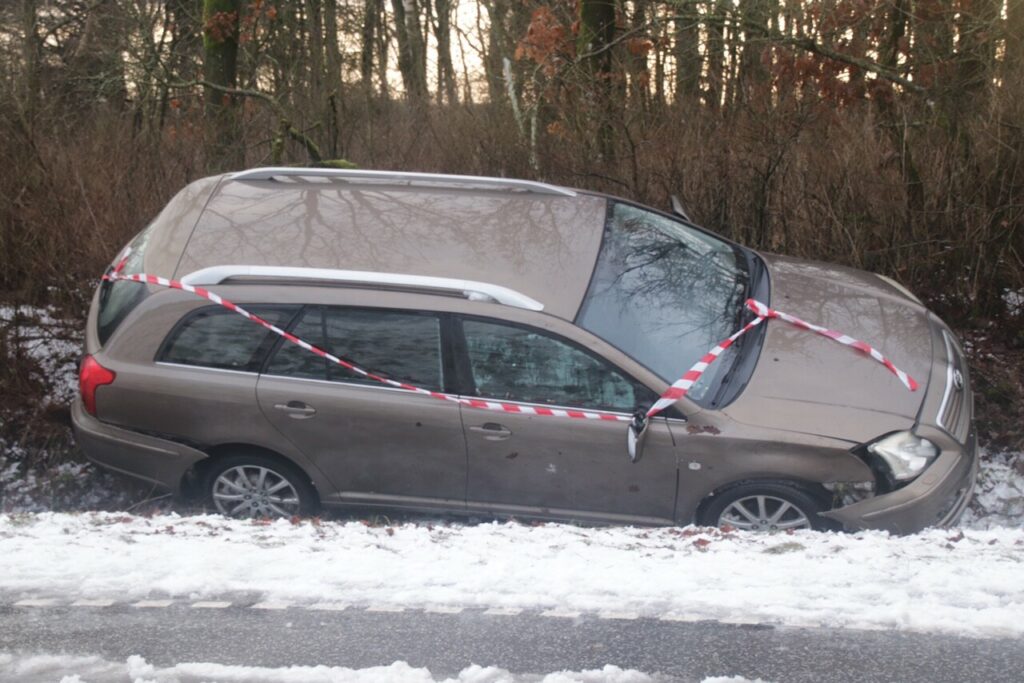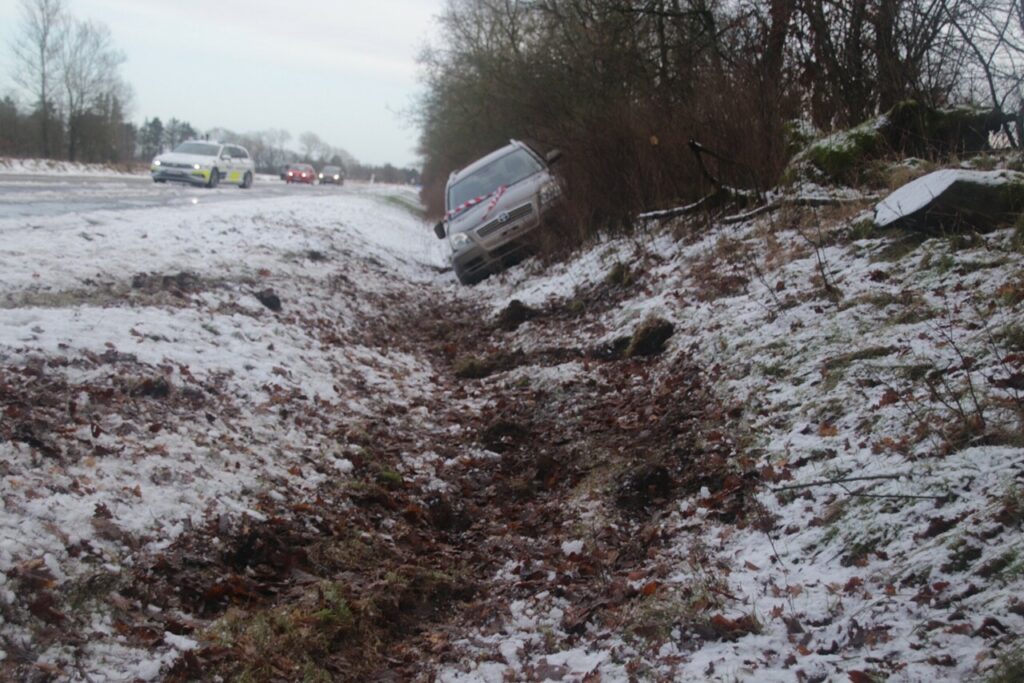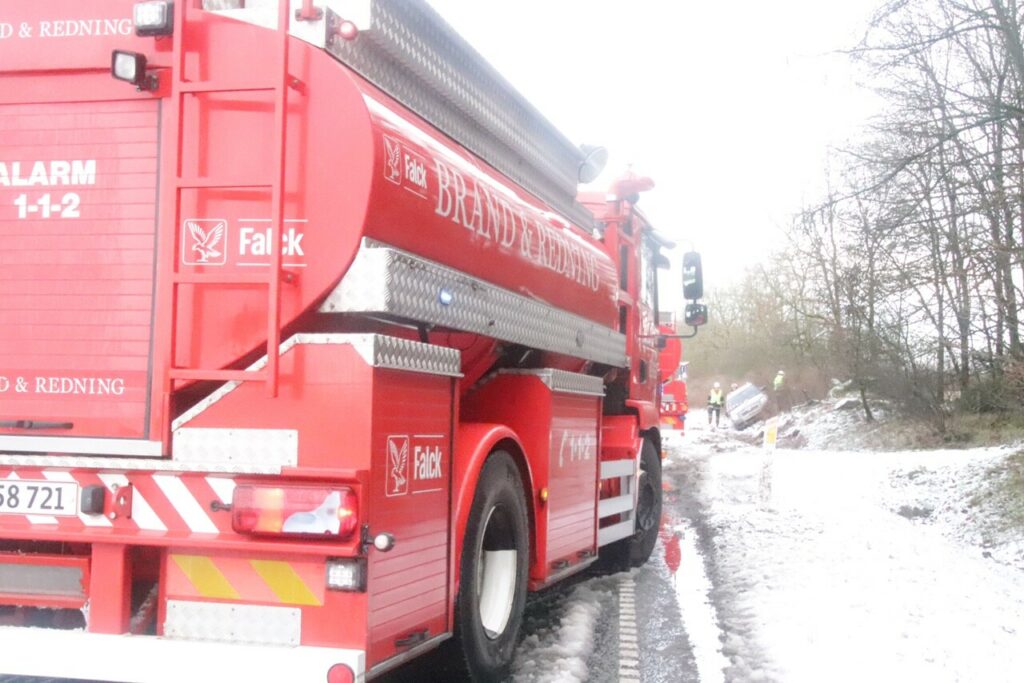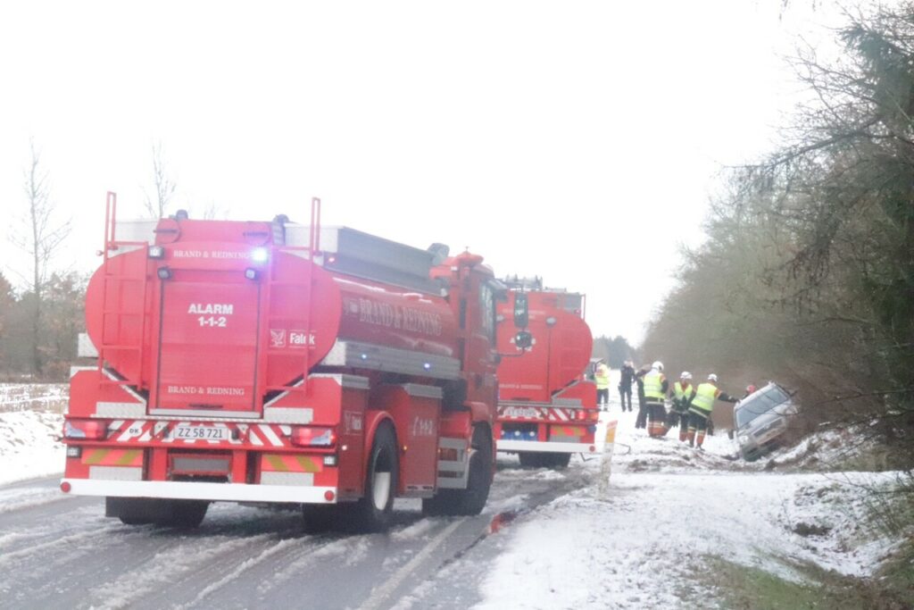 Da brandvæsnet og politiet kom frem var personen selv kommet ud af bilen. Bilen er kørt i en grøft og ulykken skyldes glatføre.