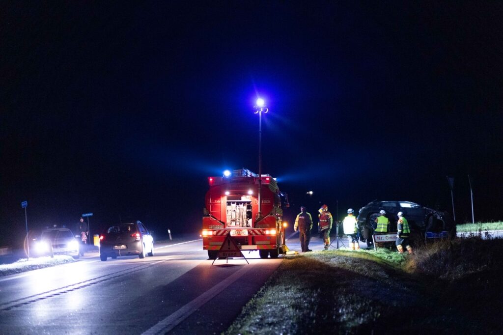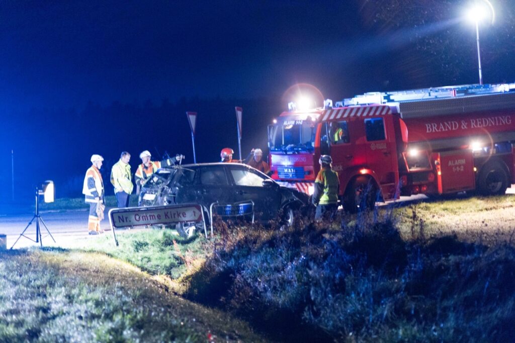 Ved ulykken røg bilen i grøften og der var melding om fastklemt person i køretøjet.