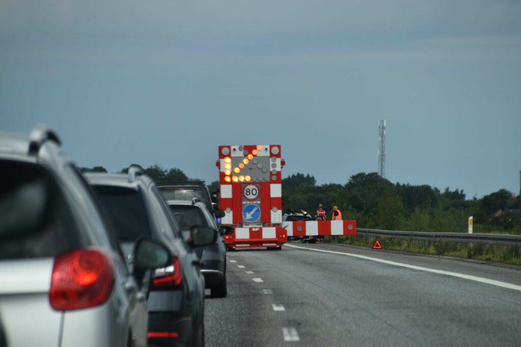Det højre spor er blevet spærret og derfor er den del kø på strækningen. Redningen er ankommet til stedet, hvor man er i gang med at arbejde på at få sporet åbnet igen, så den lange kø kan blive afviklet.