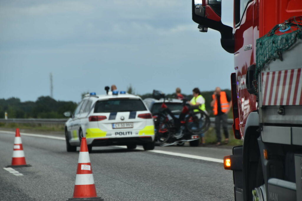 Lørdag formiddag er der sket et uheld på motorvejen fra Skærup mod Vejle mellem Kryds Skærup og Rasteplads Skærup Ø.