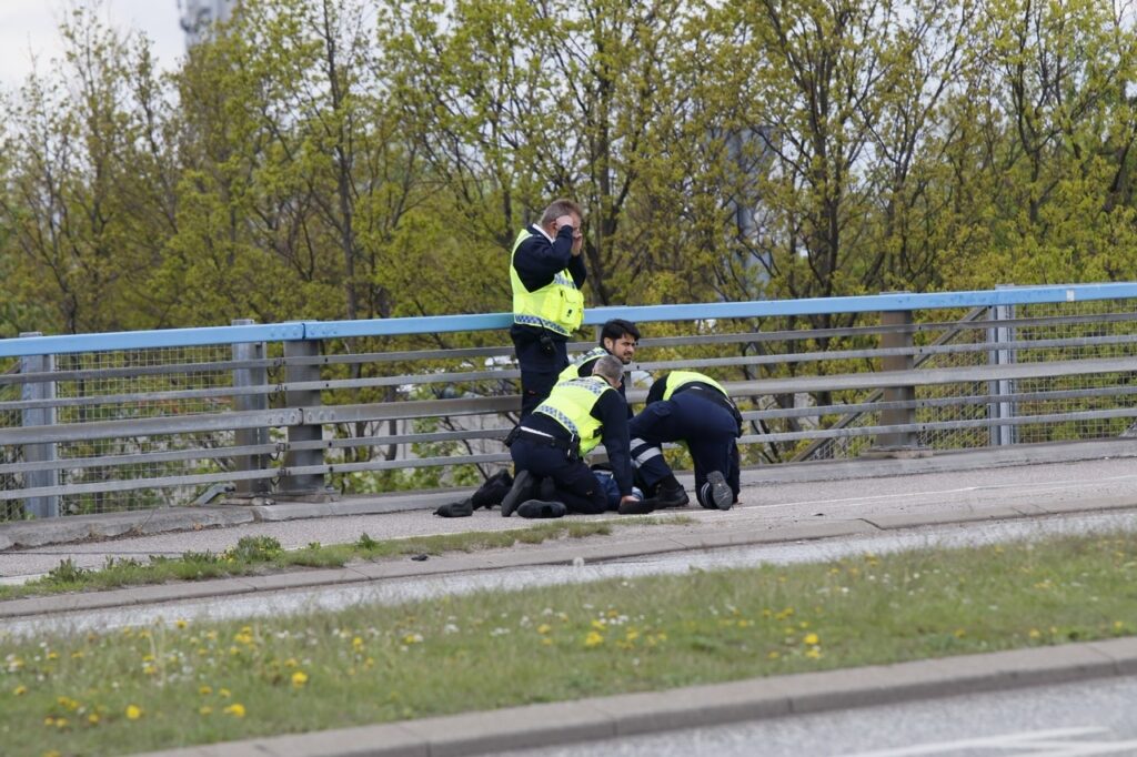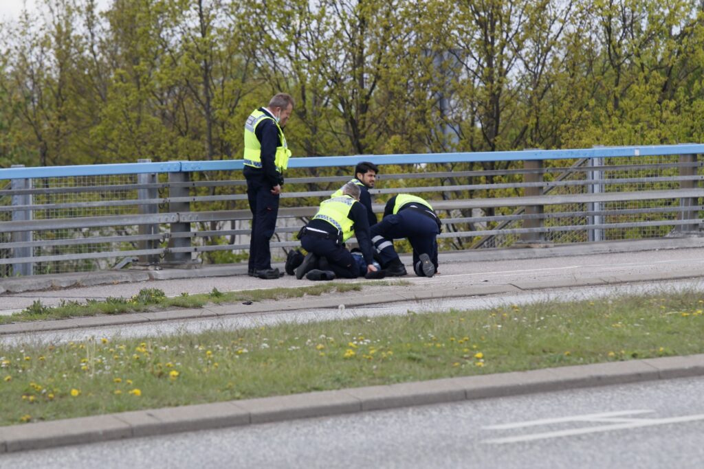En person er søndag eftermiddag blevet tilbageholdt på broen over motorvejen ved Københavns lufthavn.
