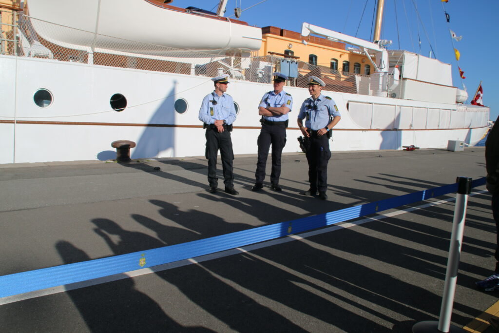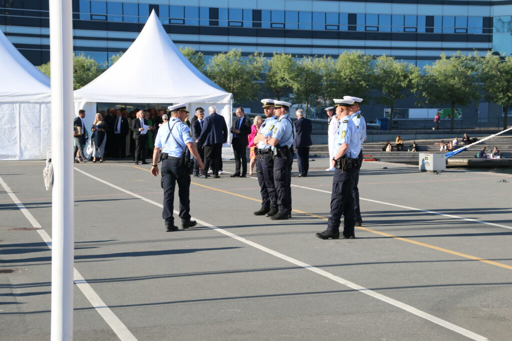 Større politiopbud ved Kongeskibet ifm. Reception for bl.a. Århus byråd lørdag aften.