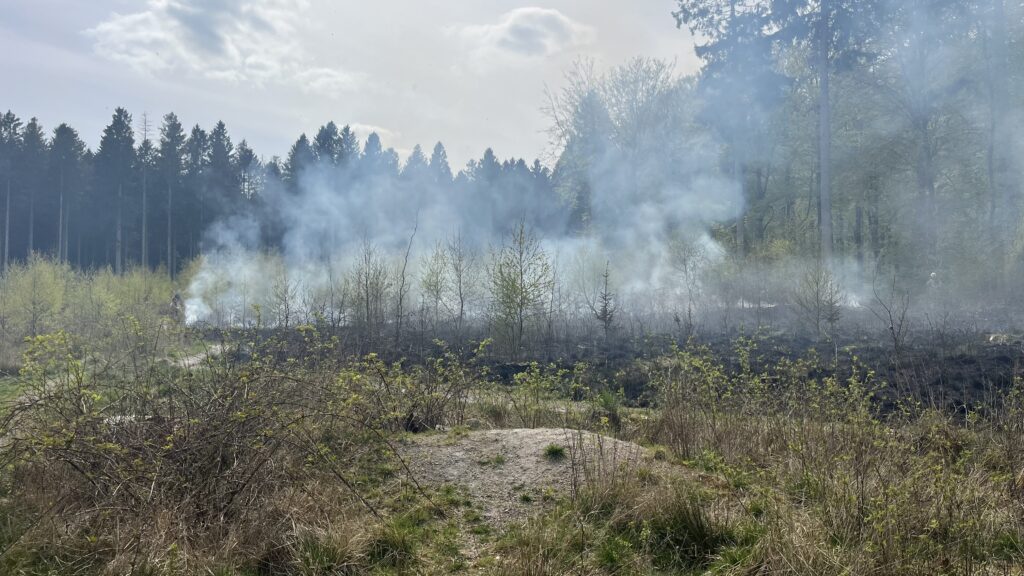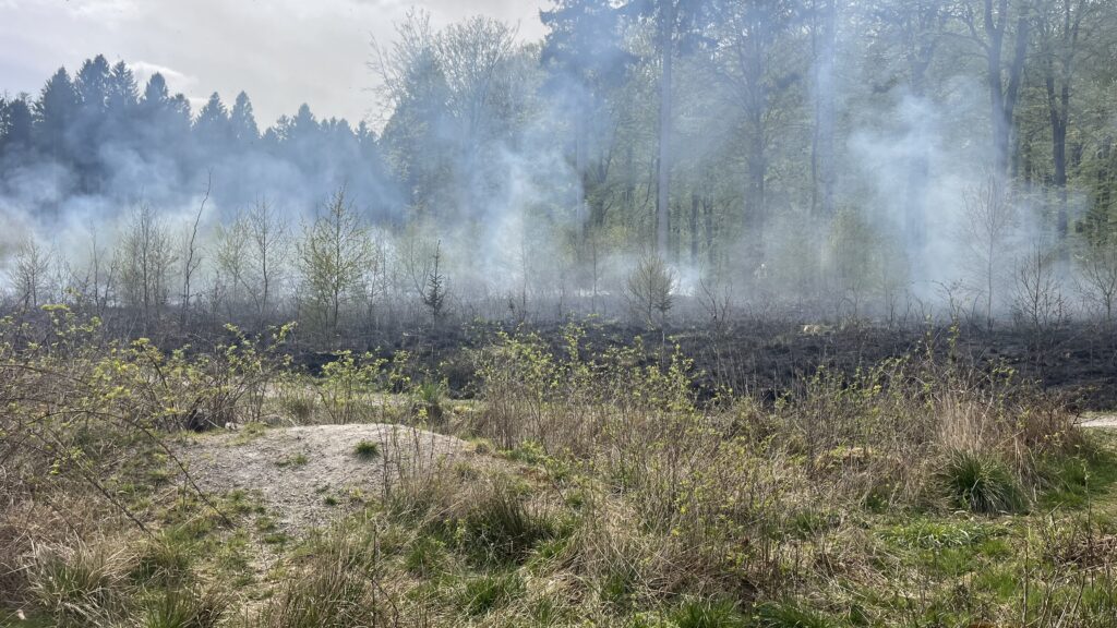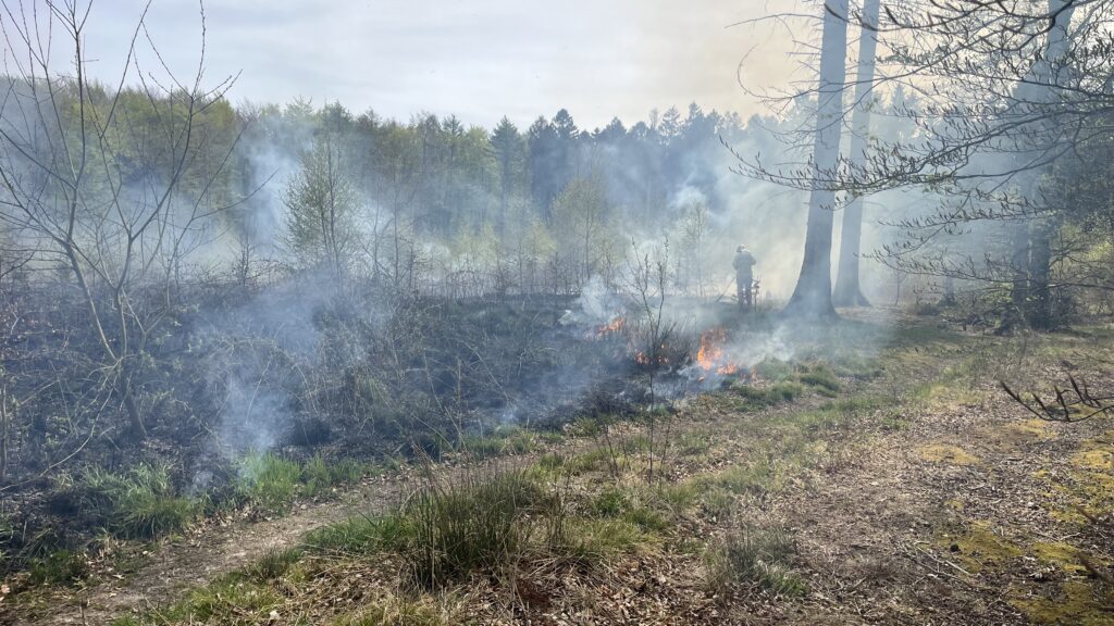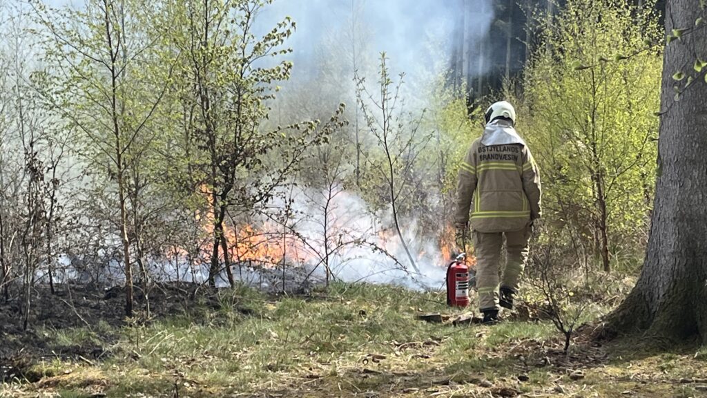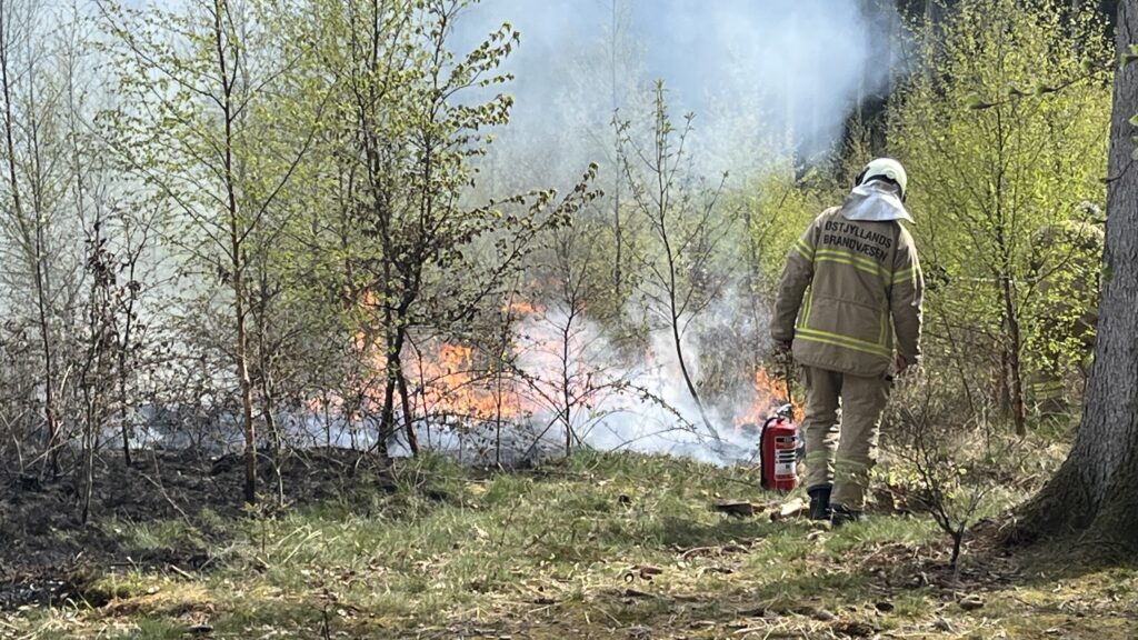 “Det har været svært at komme ind i skovområdet med udrykningskøretøjerne”, fortæller presse-fotos.dks udsendte på stedet.