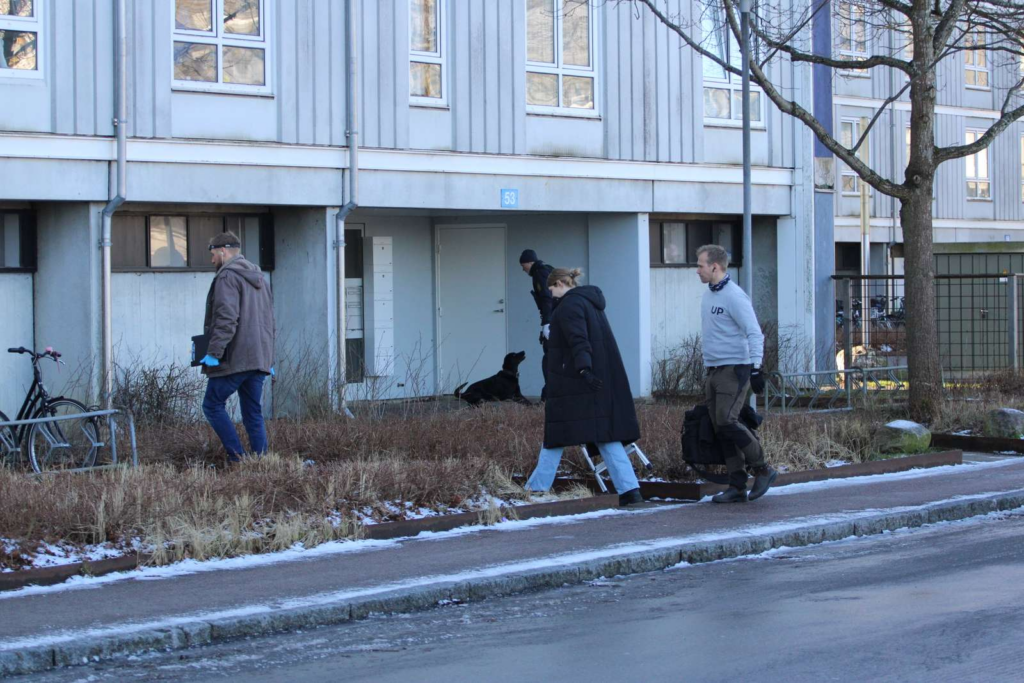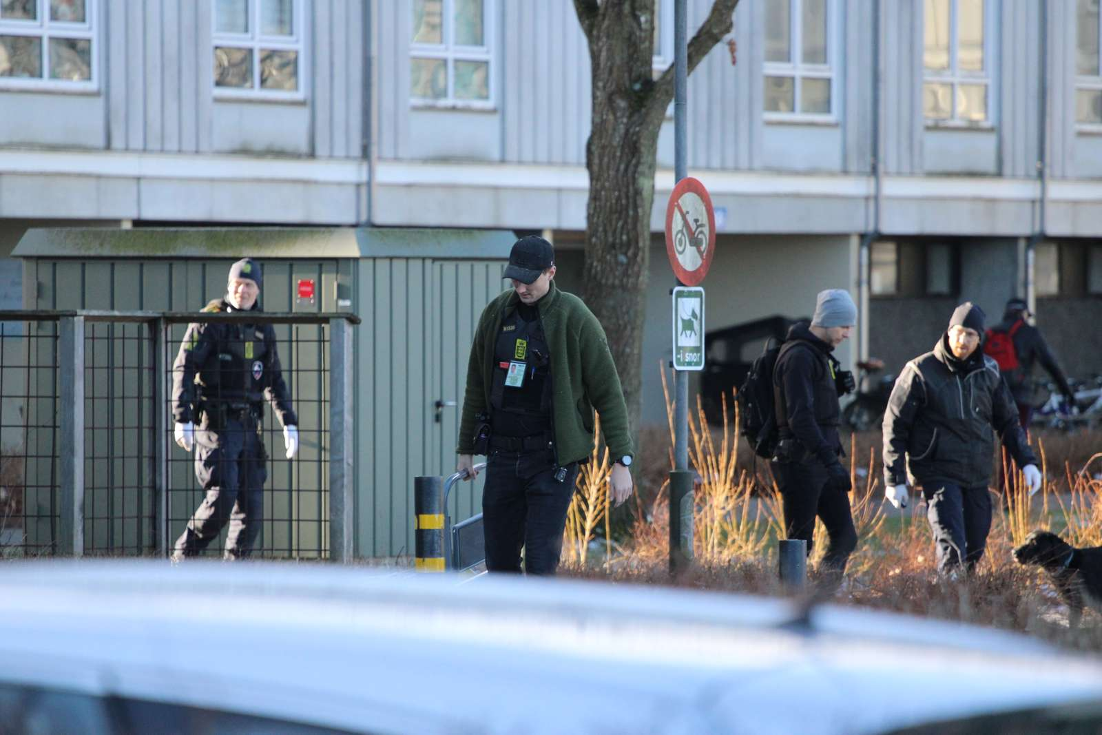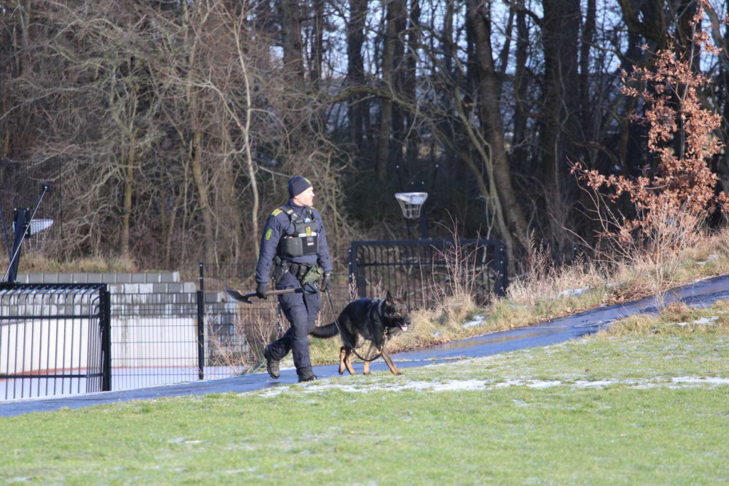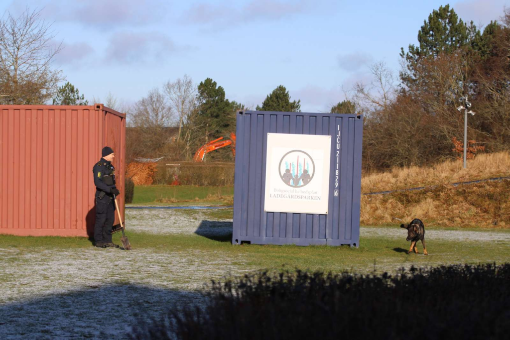 Det er fællesarealer og grønne områder ved Ladegårdsparken, som politifolk med hunde er rykket ud til.