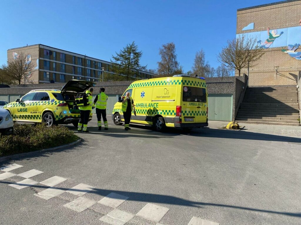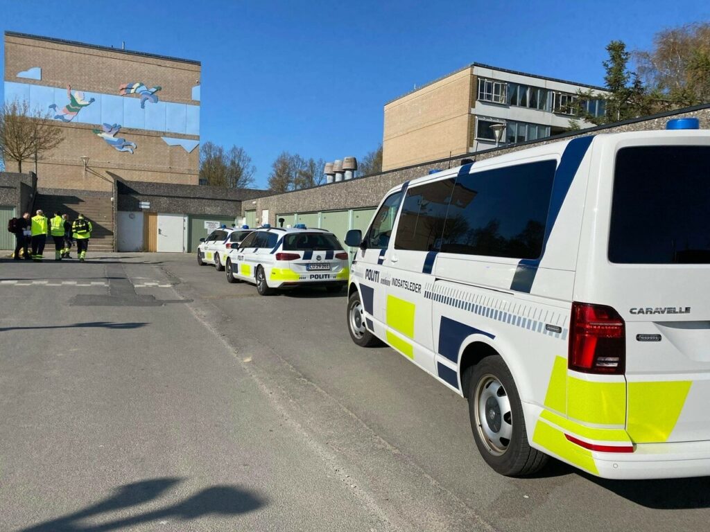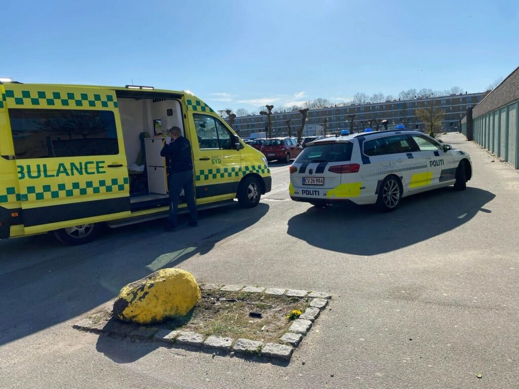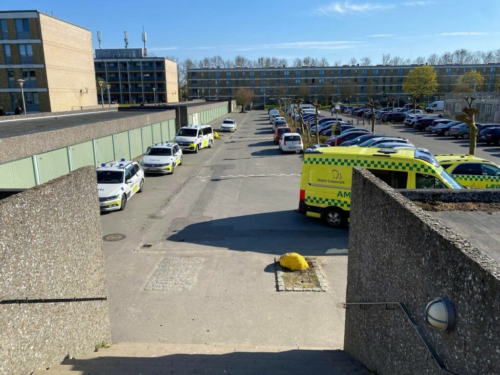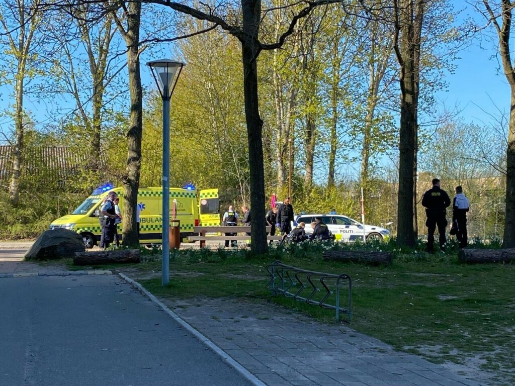 Lørdag eftermiddag er politiet talstærkt til stede i området omkring Lærkeparken i Odense. Også ambulance og læge er tilstede.