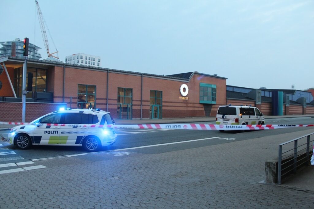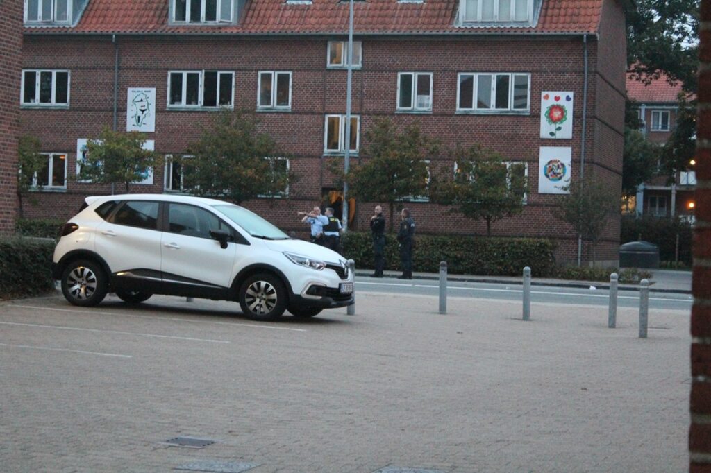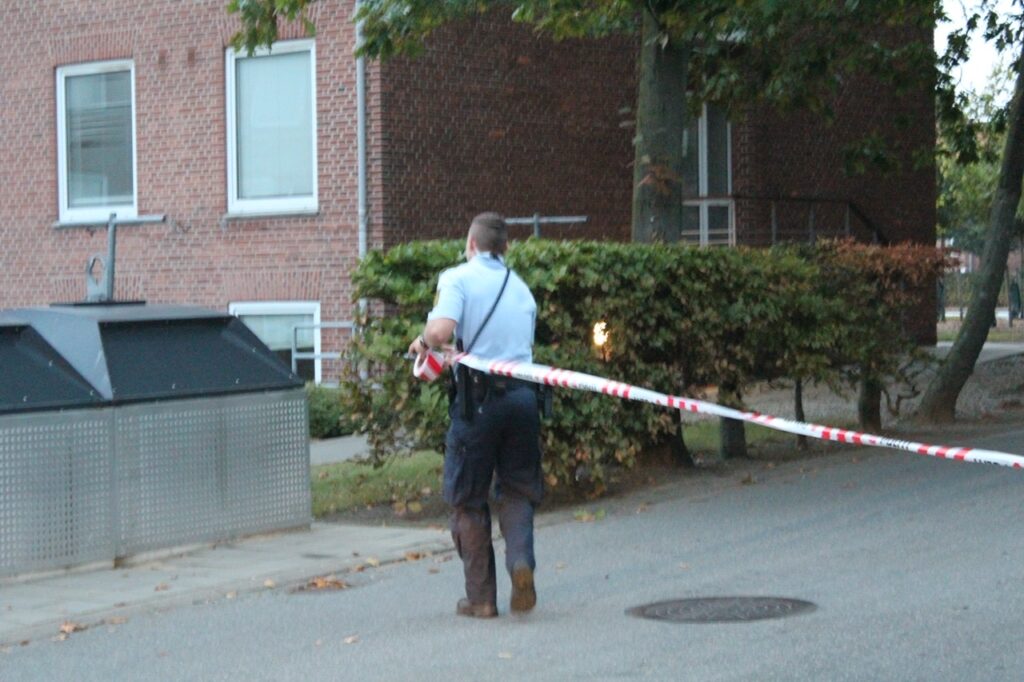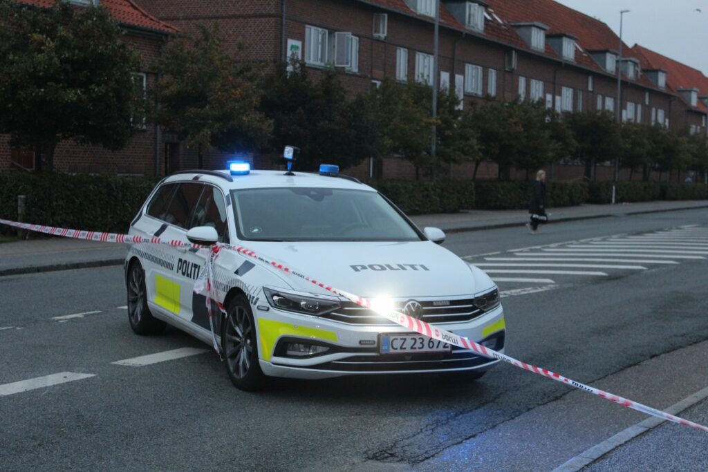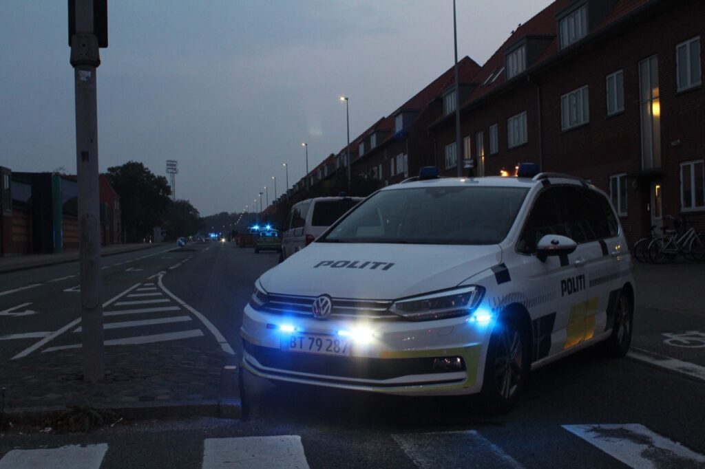 Adskillige patruljer og to indsatsledere er på stedet, hvor den ellers befærdede gade er helt lukket af.