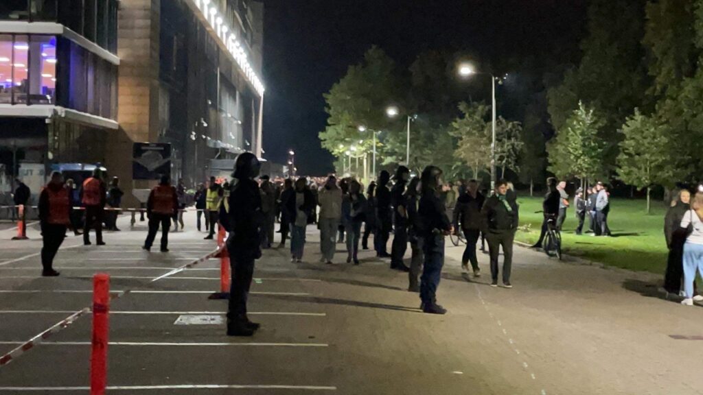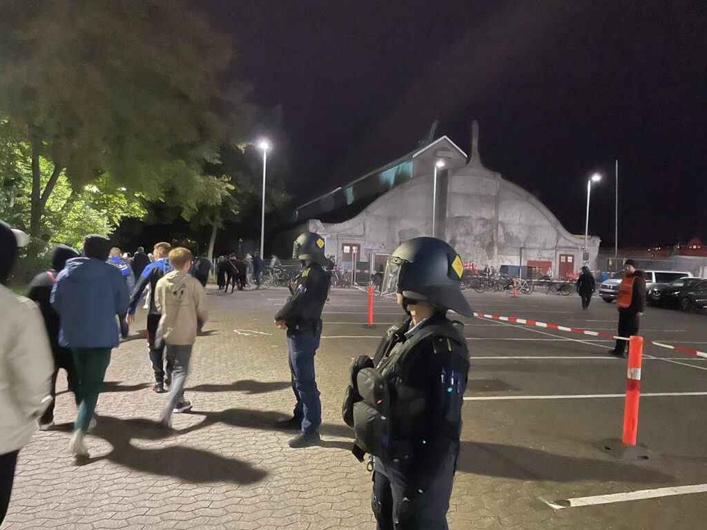 Politiet er søndag aften talstærkt til stede ved Parken i København, hvor FCK spillede uafgjort mod Viborg.