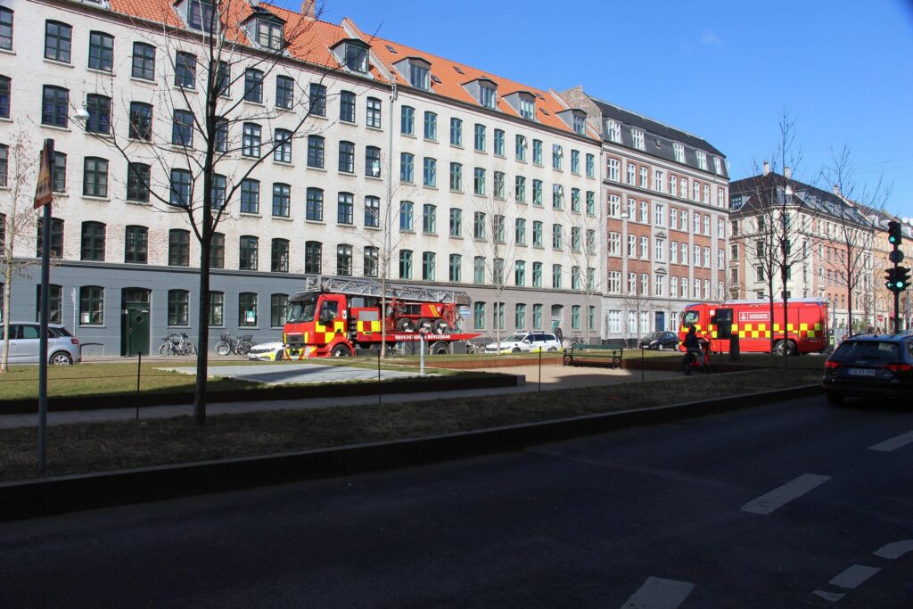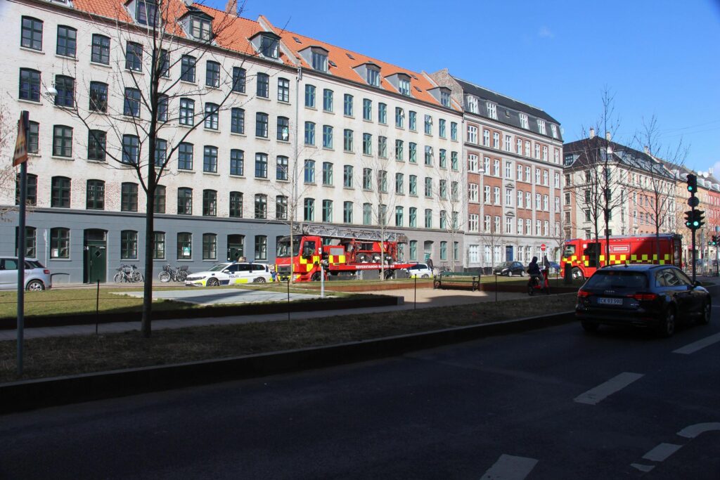 Politi og beredskab rykkede fredag talstærkt ud til Skelbækgade i København efter melding om at en person stod på taget af en lejlighed.
