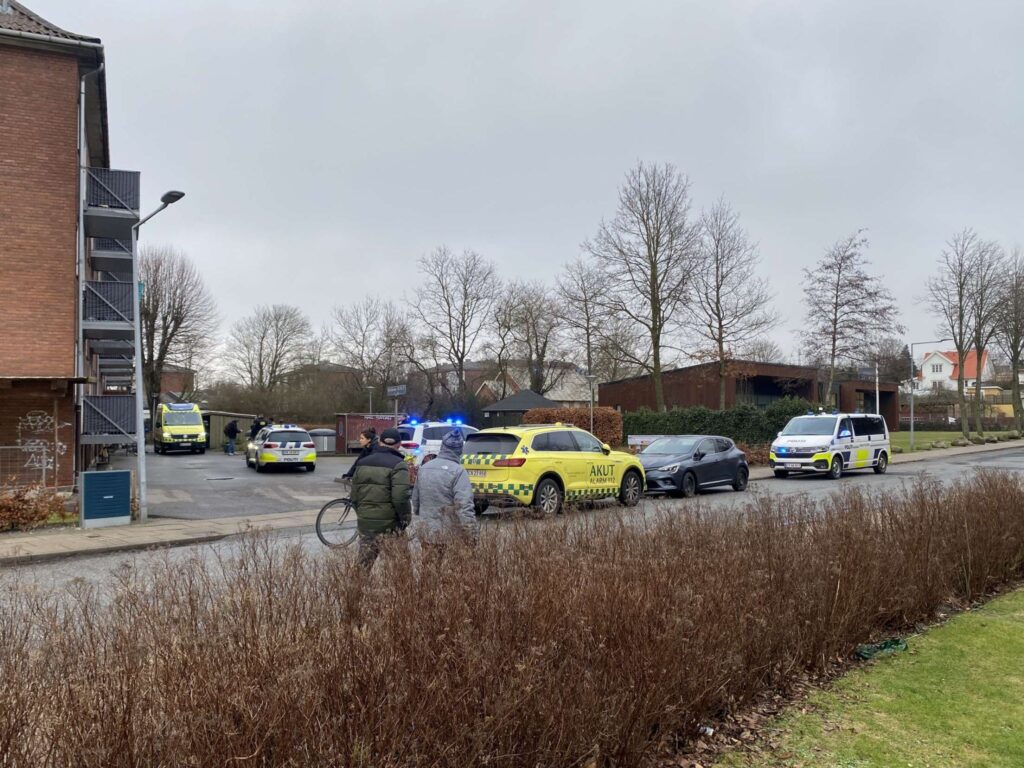 Onsdag eftermiddag er der fyldt med blå blink fra både politiets indsatleder, patruljebiler, ambulance og lægebil ved et boligkvarter.