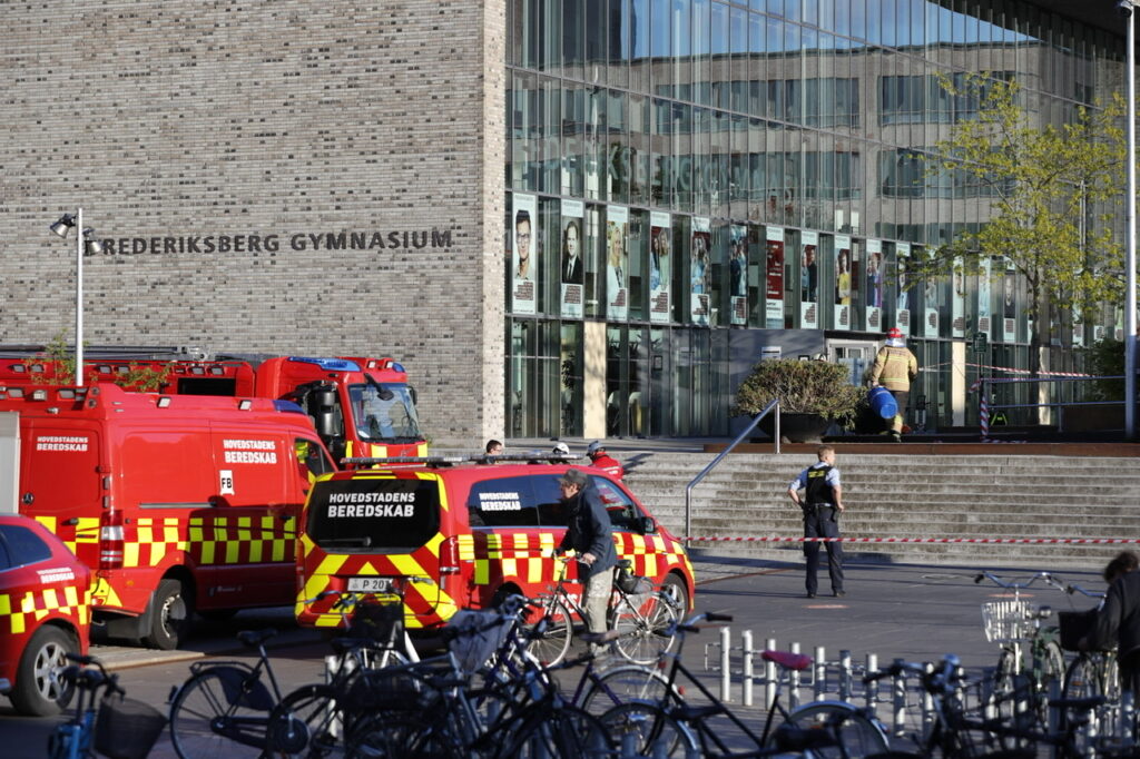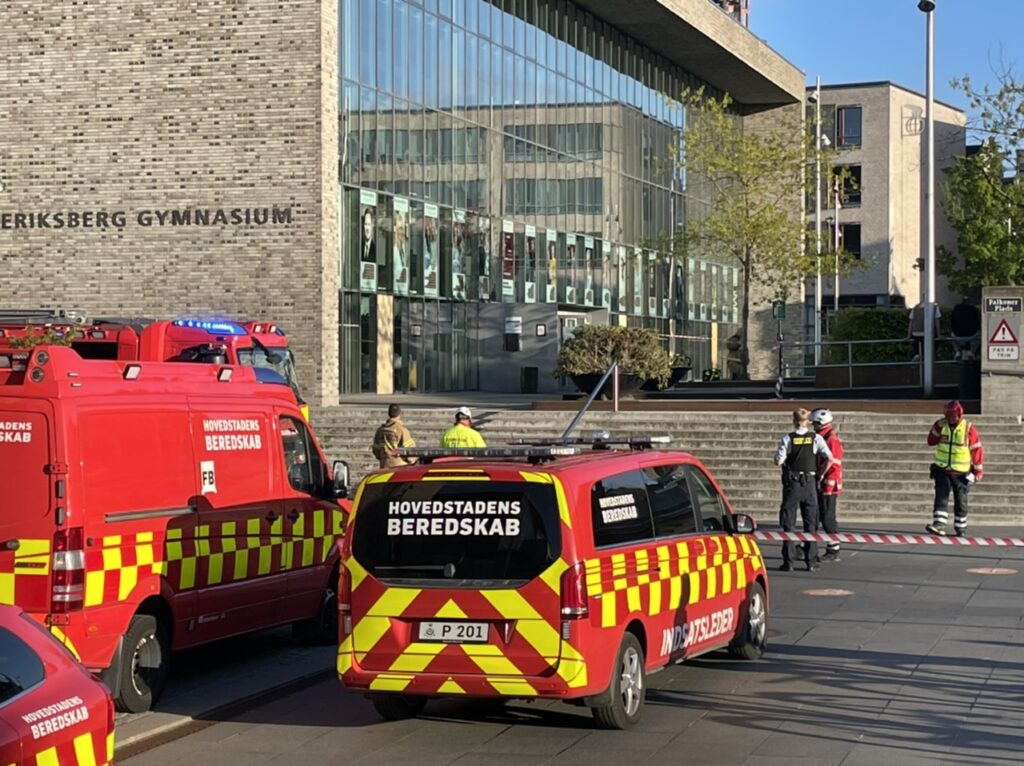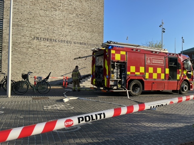 Der er mandag aften et stort beredskab af politi og brandfolk til stede ved Frederiksberg gymnasium ved Frederiksberg centeret.