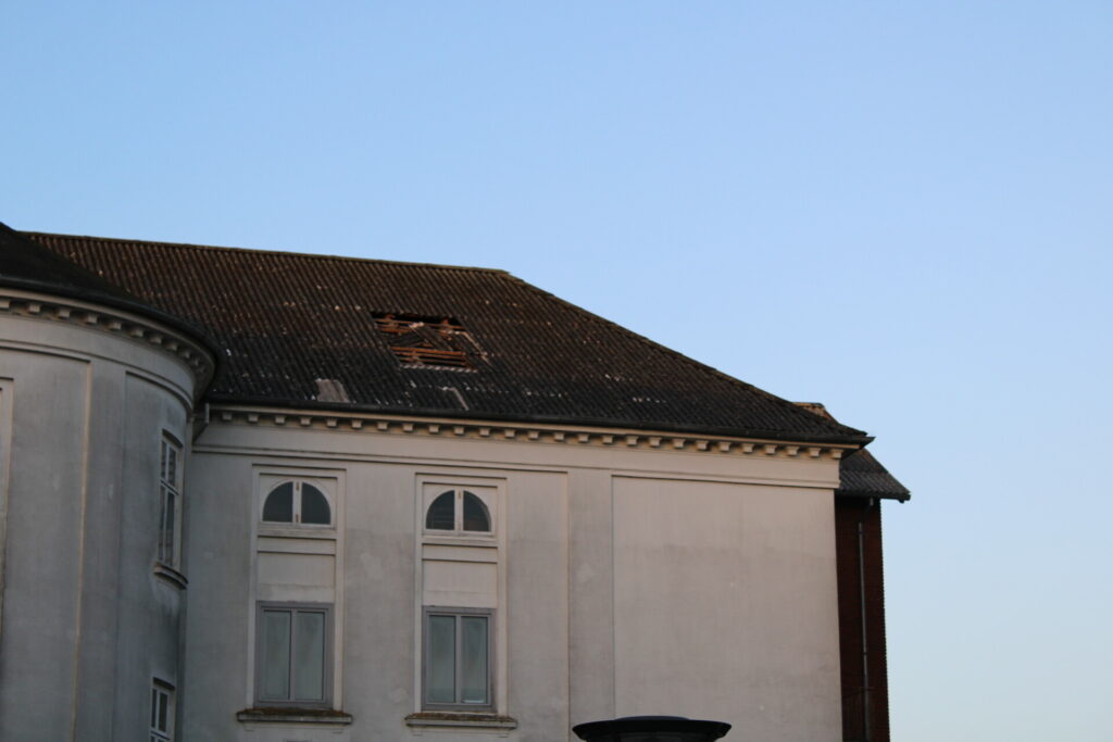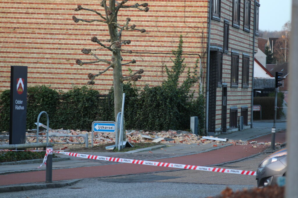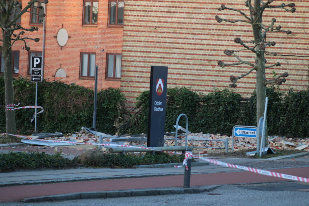 Blandt andet så er en gavl faldet ud på en bygning samt så er der sket flere tagskader, ødelagte hegn ig væltede træer.