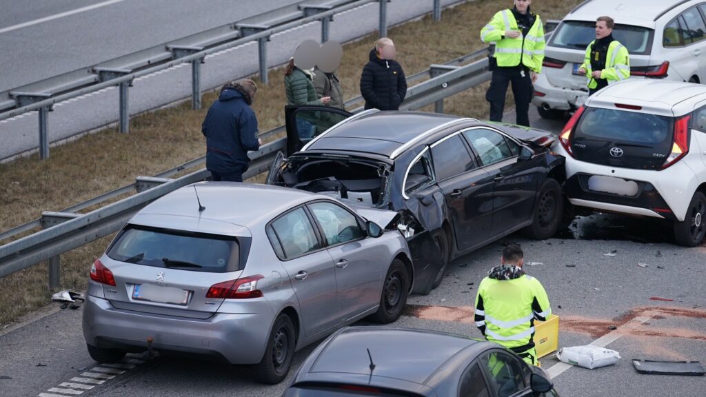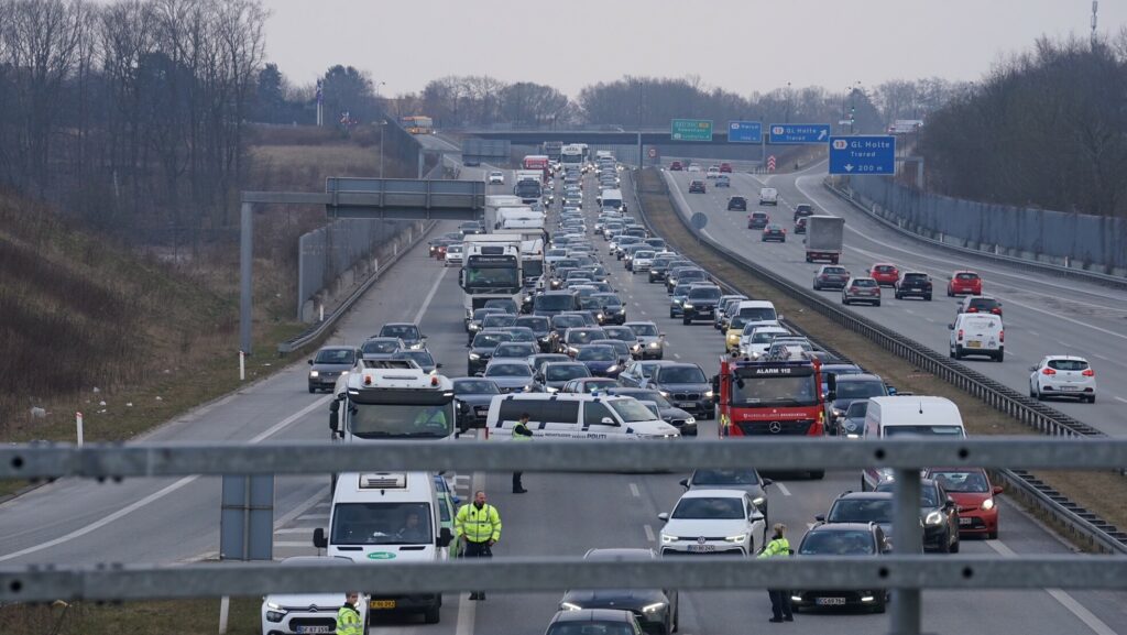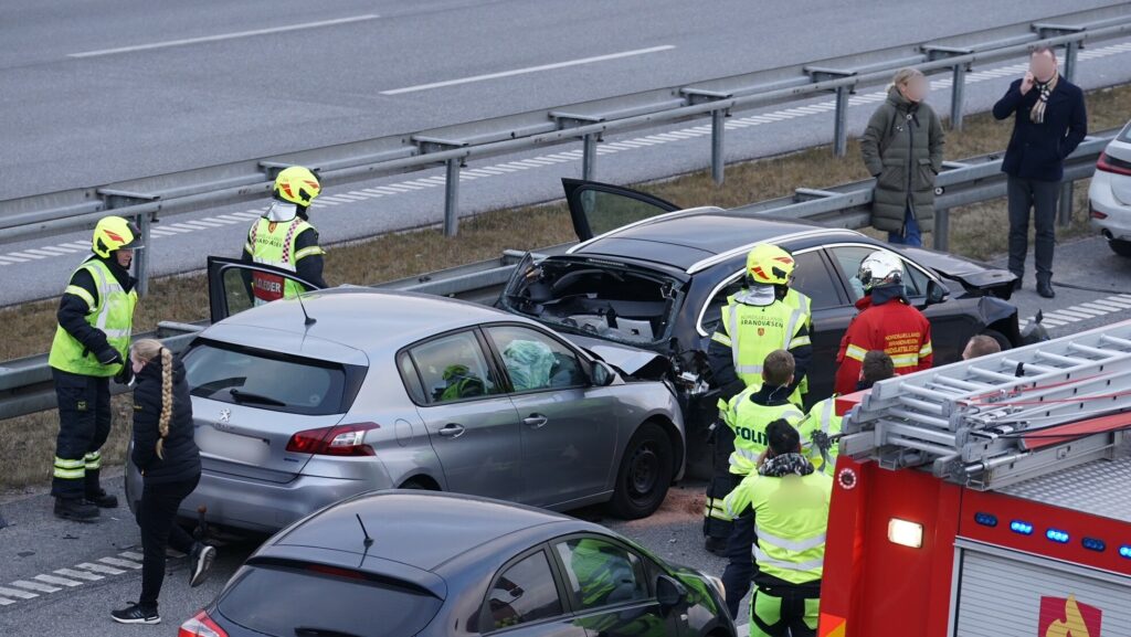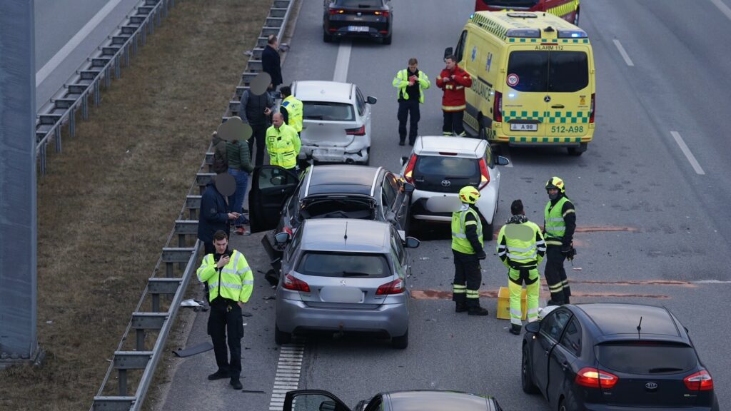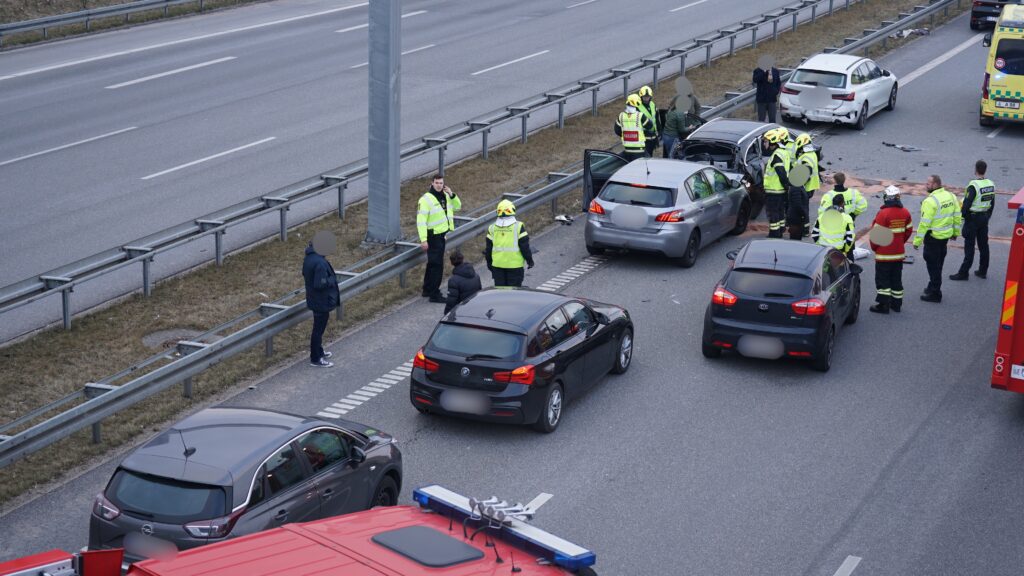 Stort harmonika sammenstød er torsdag eftermiddag sket på Helsingørmotorvejen i nordgående retning lige efter afkørsel 12 Vedbæk.