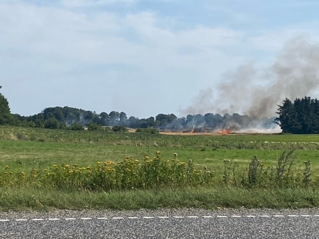 Endnu er mark er gået op i flammer. Denne gang er det i Kildetoften i Give, hvor TrekantBrand også er ude og få styr på branden.
