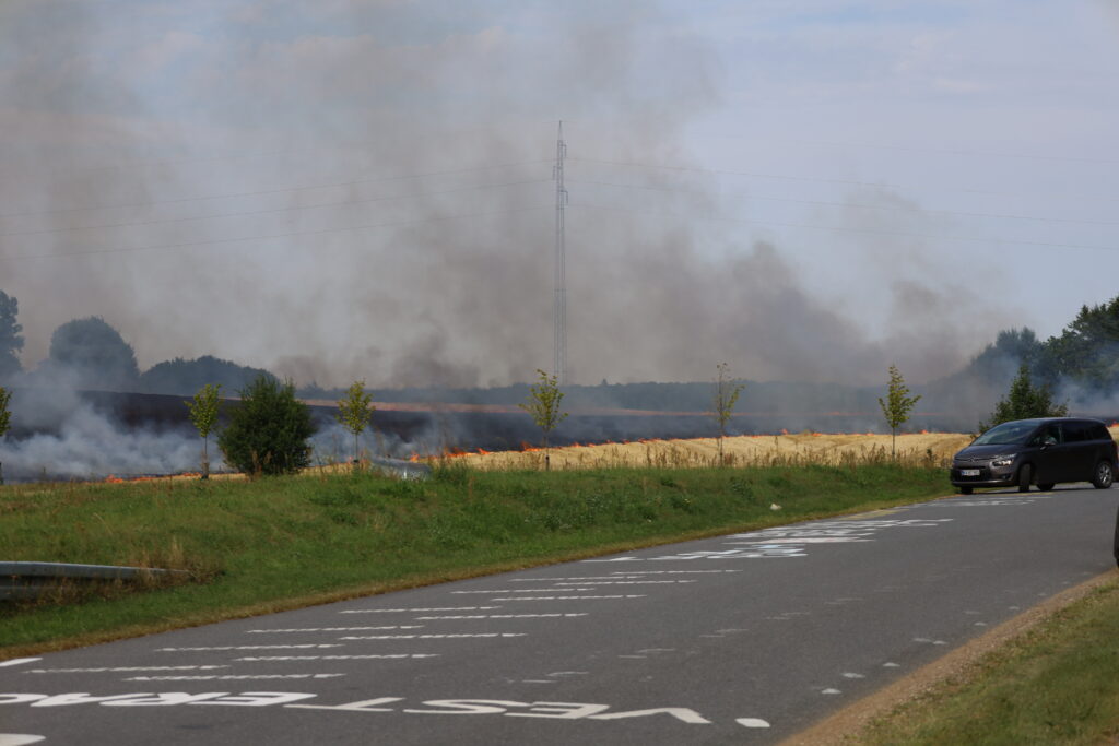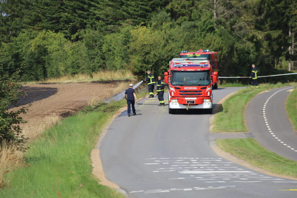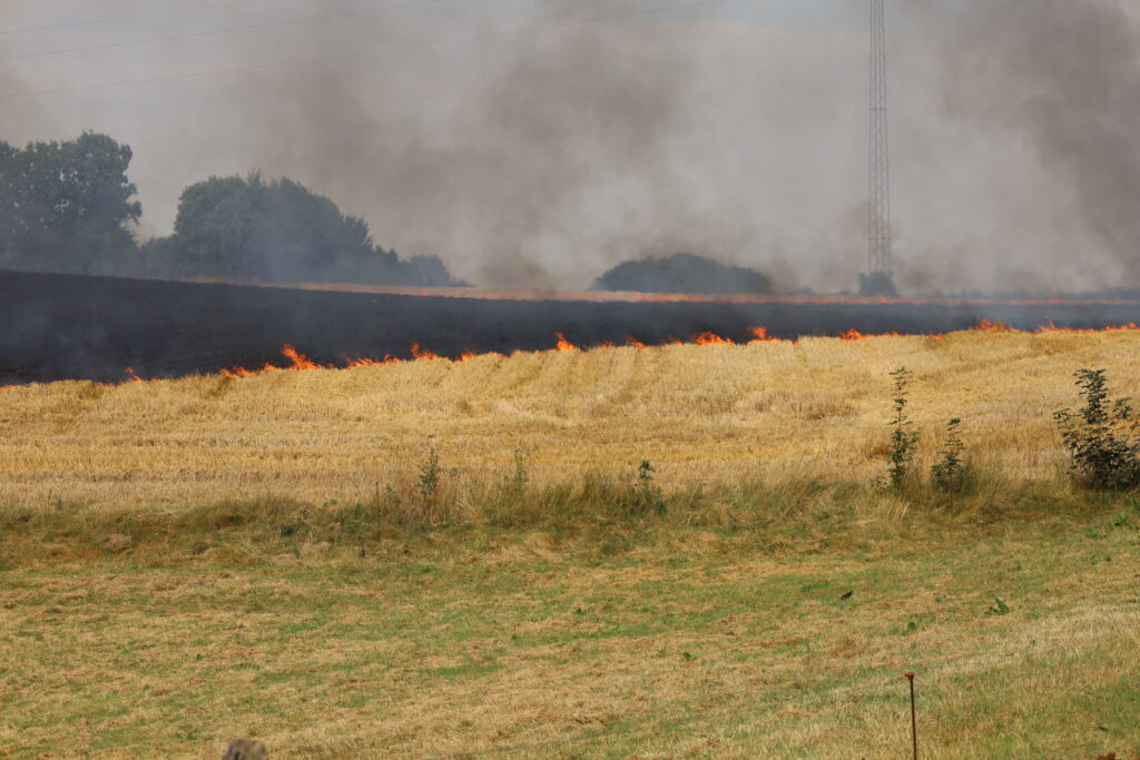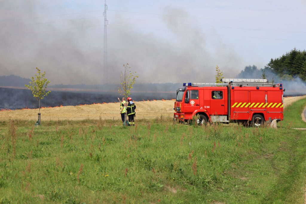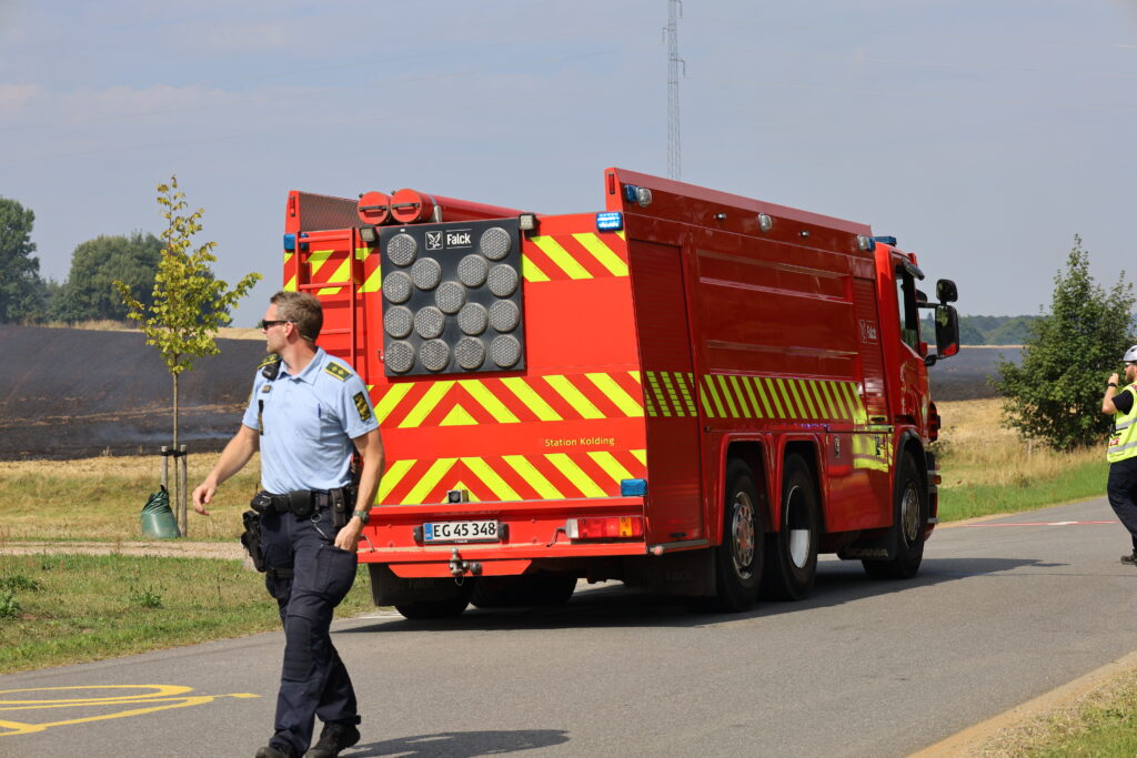 En mark på Ågårdvej i Egtved er blevet antændt og står lige nu i flammer, som kan ses på flere hundrede meters afstand.