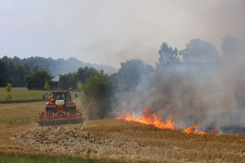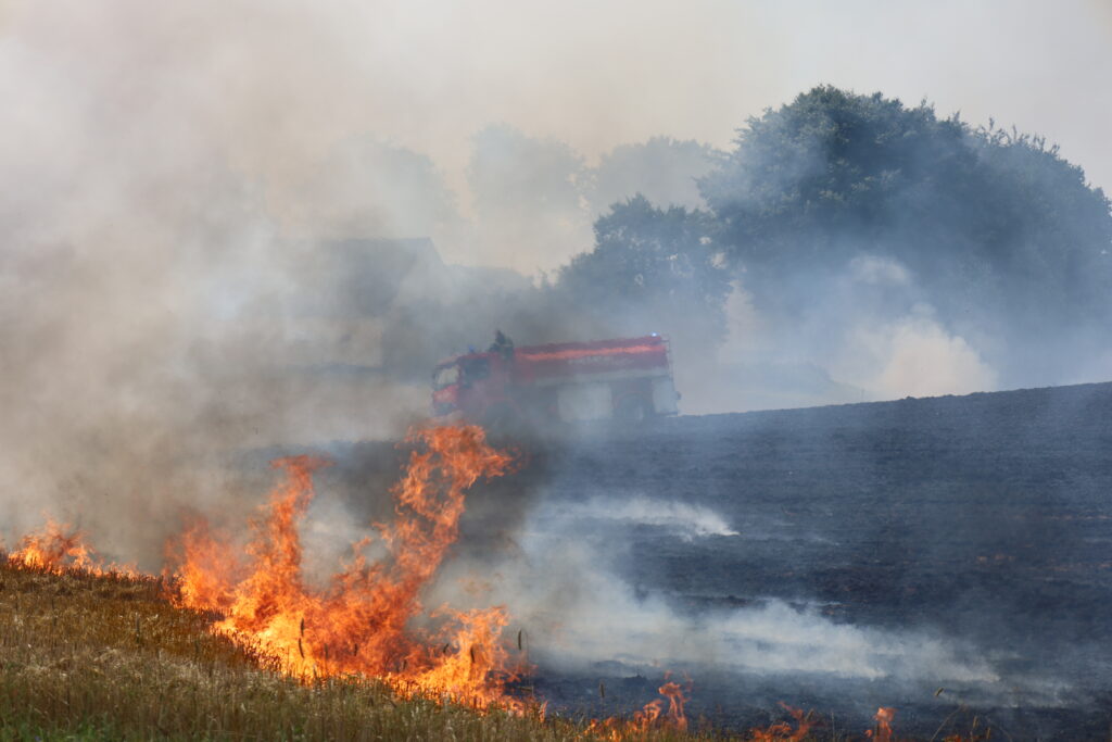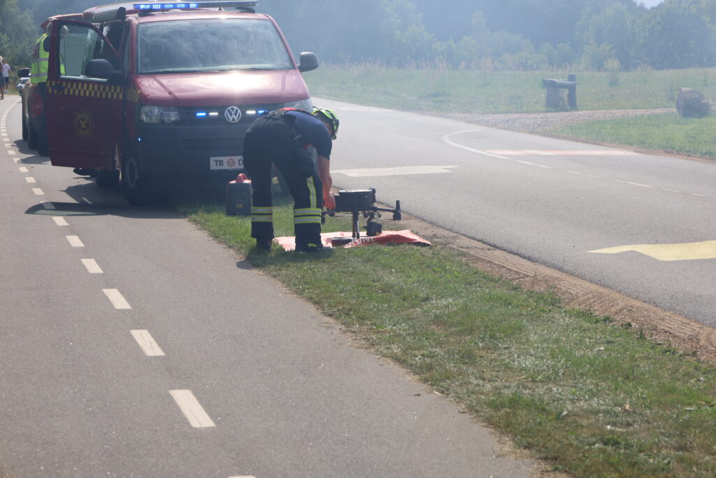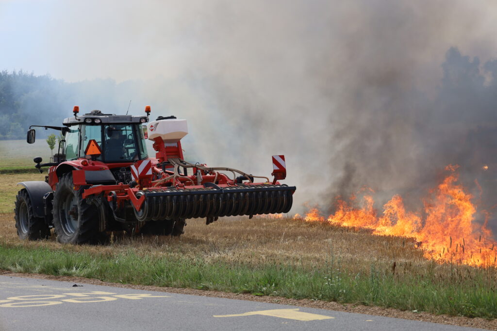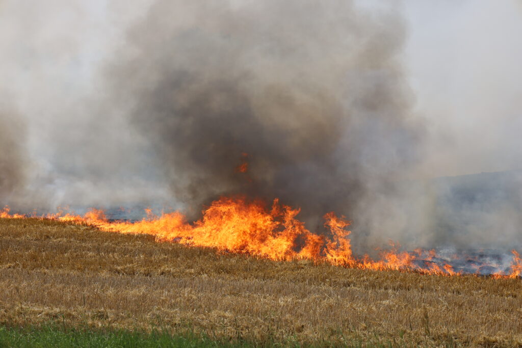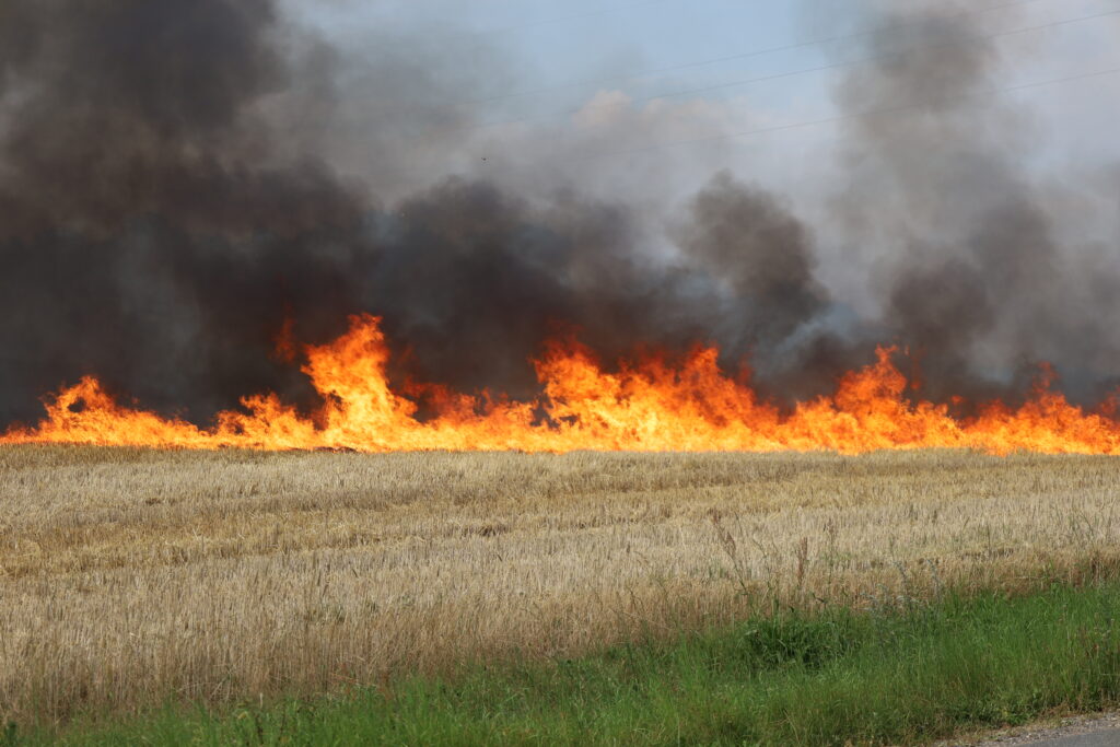 En mark på Ågårdvej i Egtved er blevet antændt og står lige nu i flammer, som kan ses på flere hundrede meters afstand.