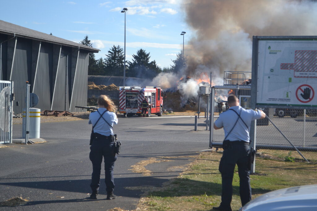 Der er meldinger om, at det er grunden, hvor Sønderjysk Biogas har til huse. Lige nu er brandvæsnet i fuld gang med at få styr på de høje flammer, mens politiet har spærret indgangen til området.