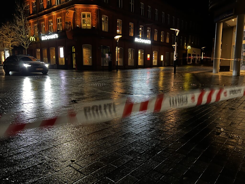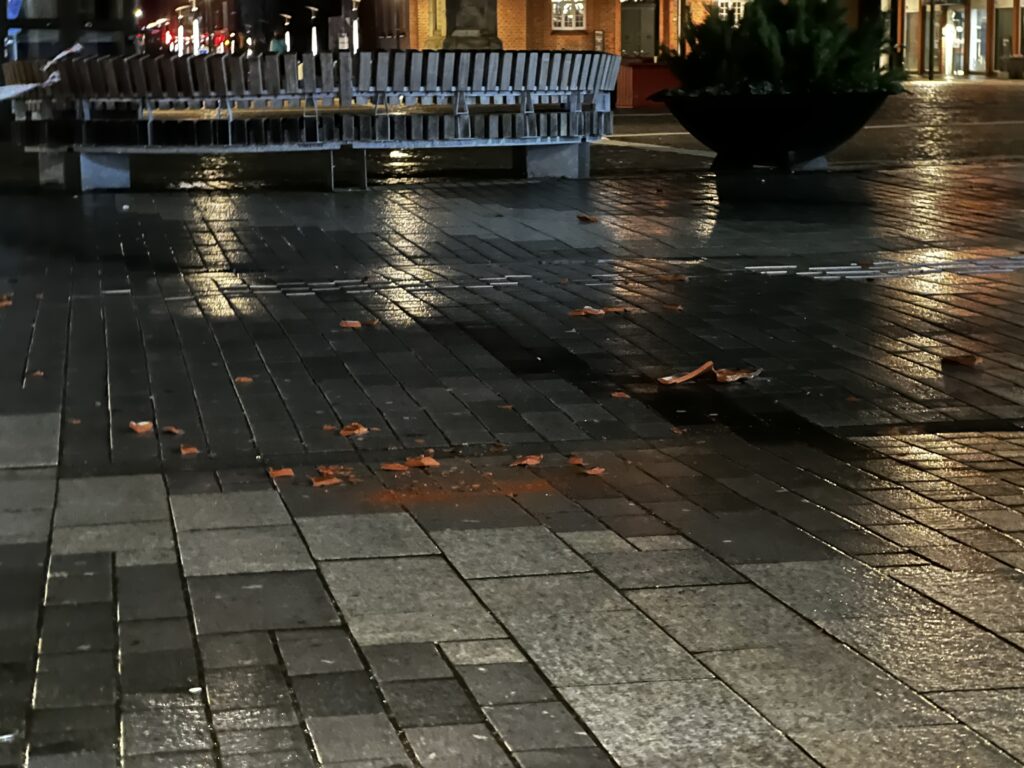 På torvet i Esbjerg, væltede flere tagsten ned fra en bygning.