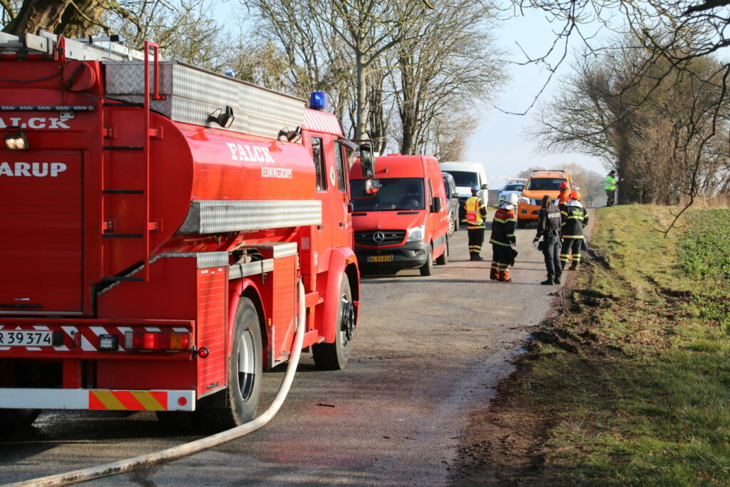 Brandvæsnet er søndag formiddag atter til stede, for at efterslukke brandtomten.