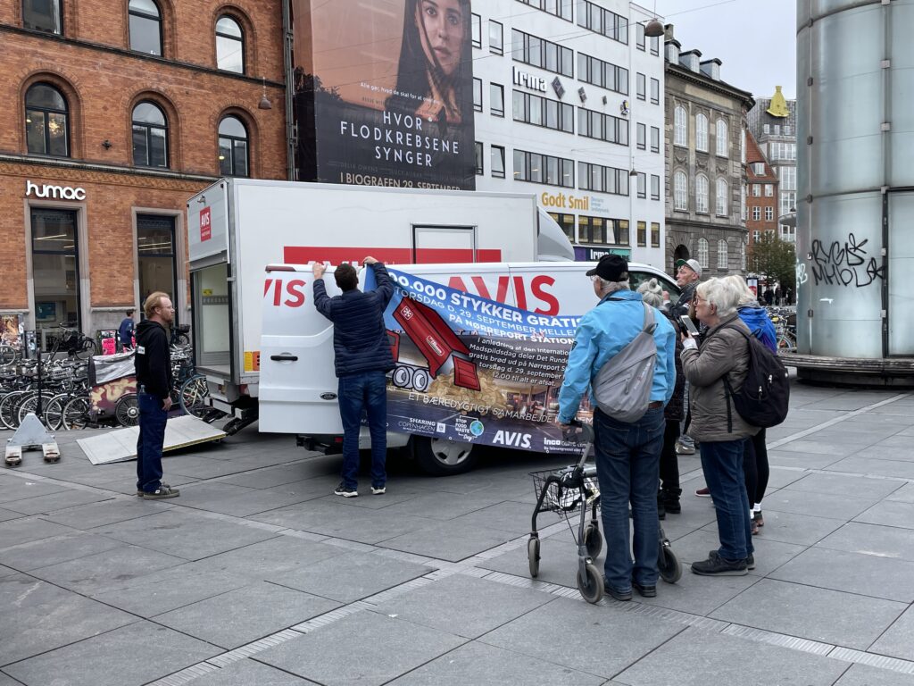 Organisationen Det Runde Bord uddelte torsdag middag 100.000 stykker gratis brød på Nørreport Station i København.