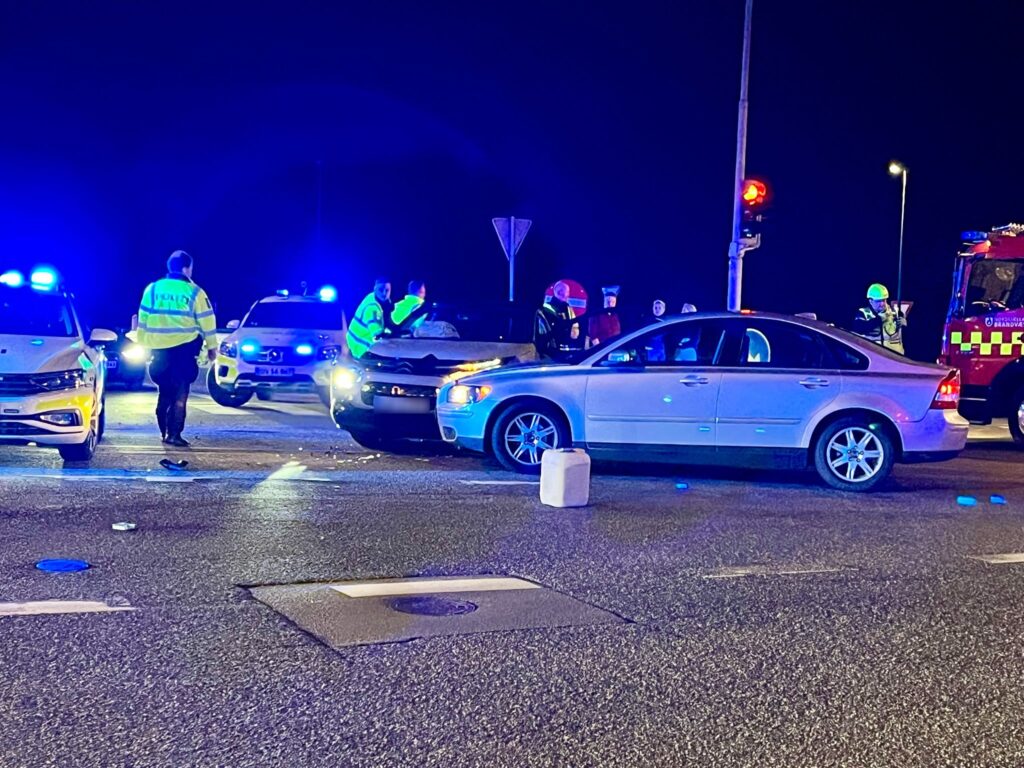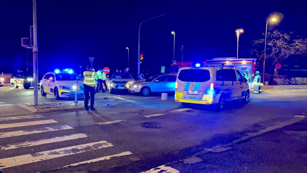 To biler er kørt sammen i et lyskryds.