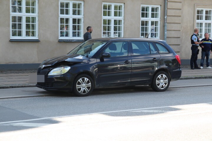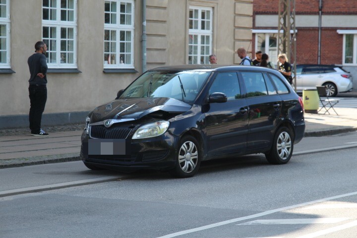 “Vi modtog anmeldelsen kl. 13.39. Den ene af de to bilister bliver sigtet for at have forvoldt færdselsuheldet ved at køre frem for rødt lys. Jeg kan ikke sige hvem af dem, det er,” siger vagtchef hos Københavns Politi, Henrik Stormer, til presse-fotos.dk