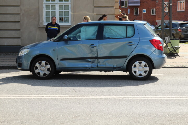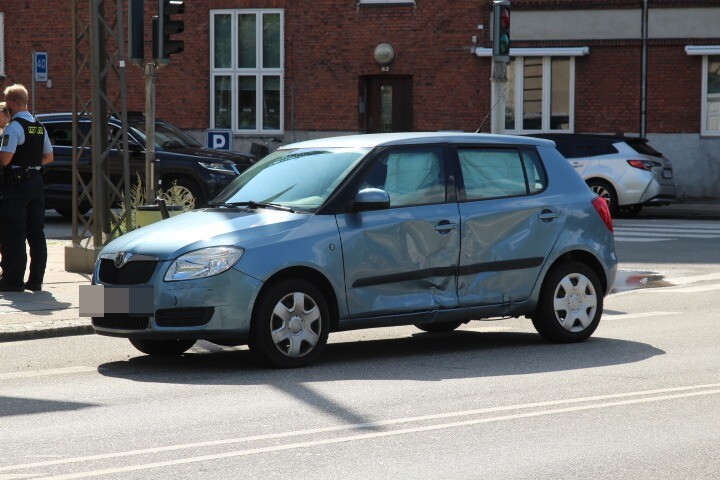 To biler fik gevaldige buler, da de fredag eftermiddag stødte sammen i krydset Strandlodsvej/Øresundsvej på den del af Amager, der hører under Københavns Kommune.