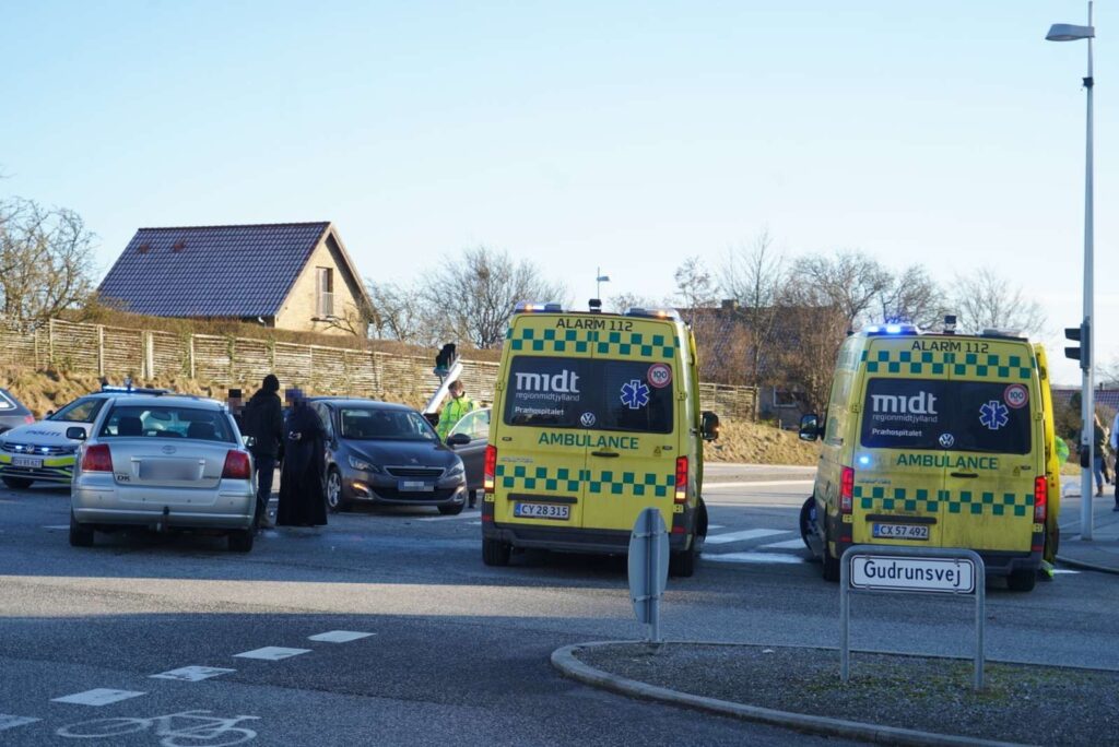 To ambulancer er fremme på stedet, hvor man er i gang med at tilse de involverede parter.