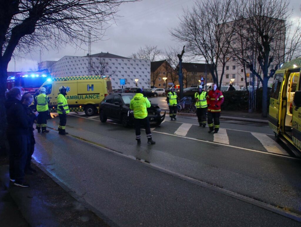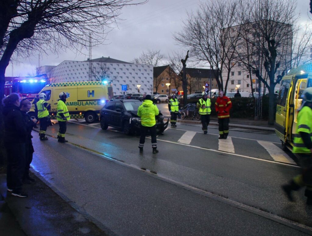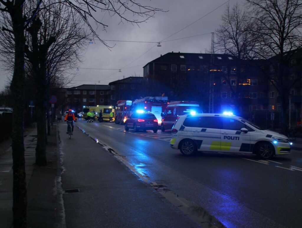 Politi, ambulancereddere og beredskab er til stede ved uheldet.