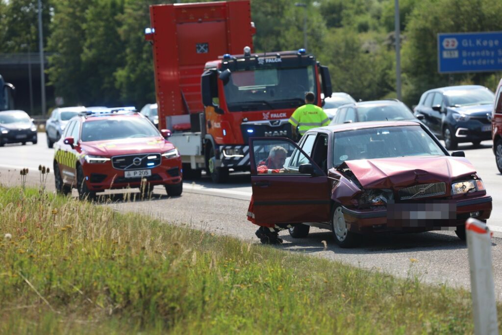 Københavns Vestegns Politi efterlyser en bil efter to færdselsuheld søndag på Holbæk-motorvejen ved Hvidovre-afkørslen mod Amager.