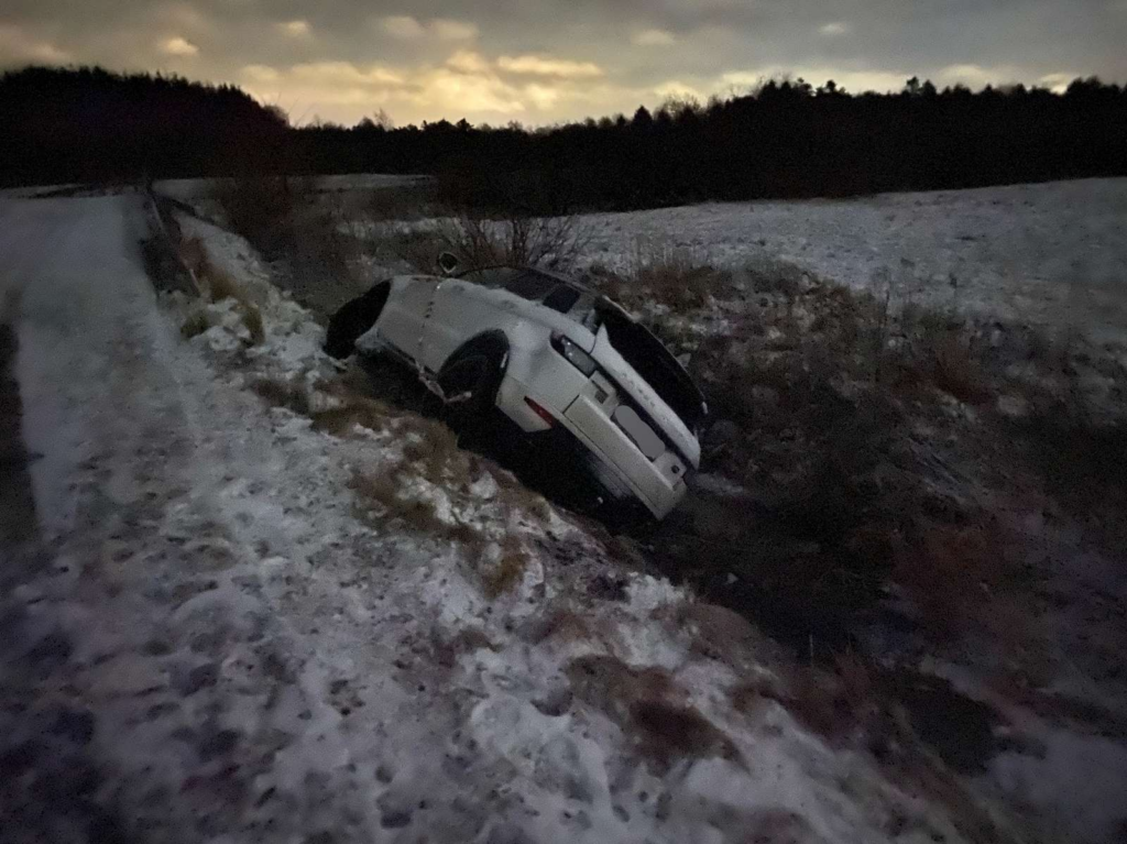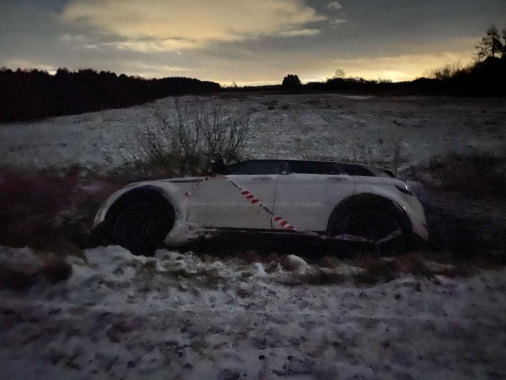 På den ellers relativt lige vej mistede føreren nemlig pludselig kontrollen over personbilen og endte med at hamre ned i grøften sammen med en person på passagersædet.