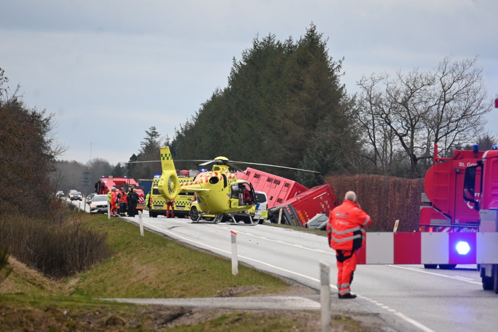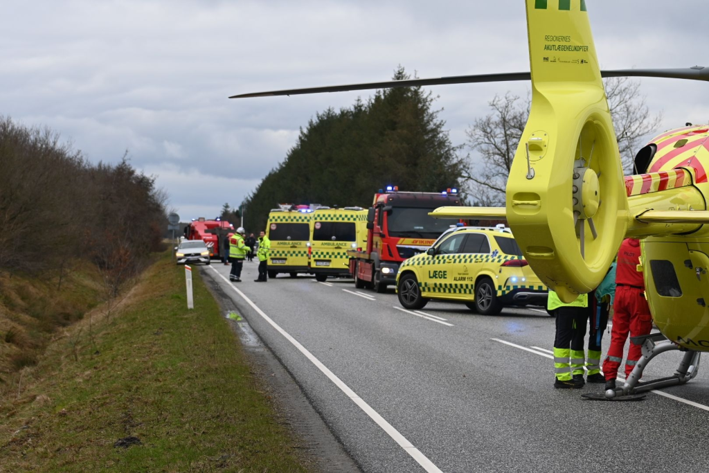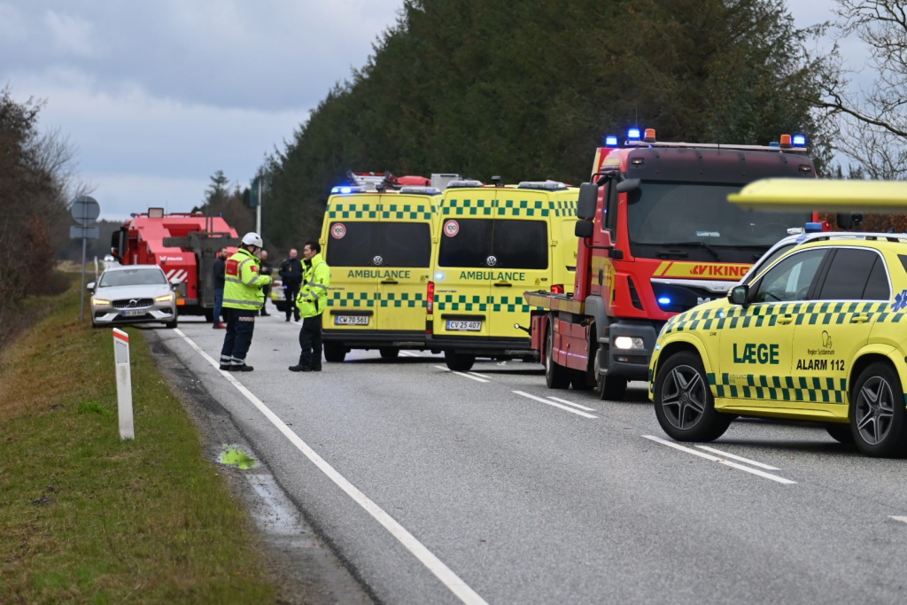“De to personer i bilen blev begge overflyttet til Skejby Sygehus, hvor de er i kritisk tilstand. De to kunne ikke selv komme ud af bilen, så de måtte klippes fri,” siger vagtchefen til B.T..