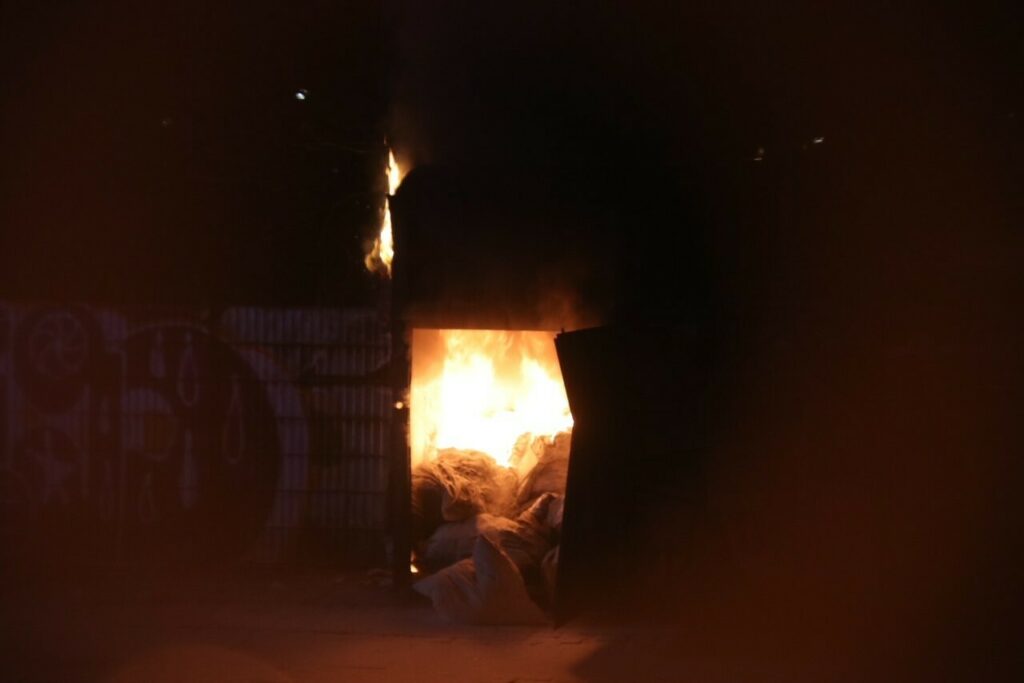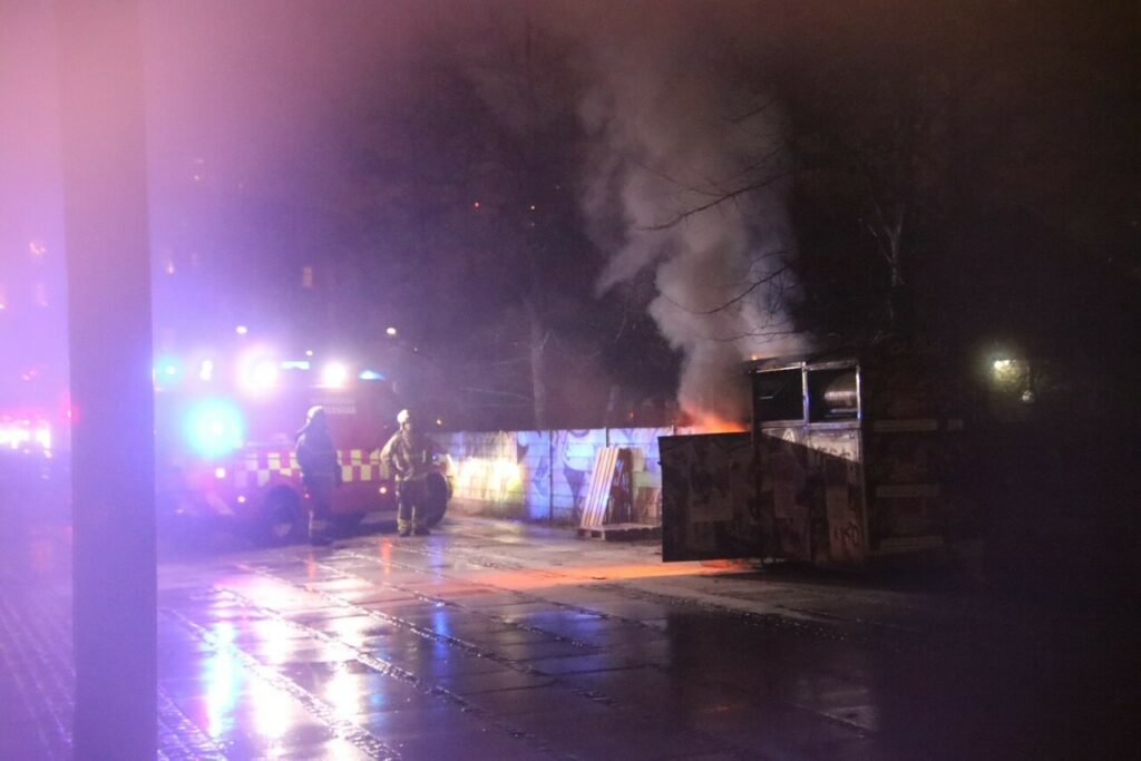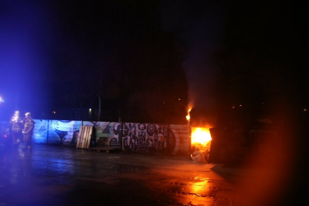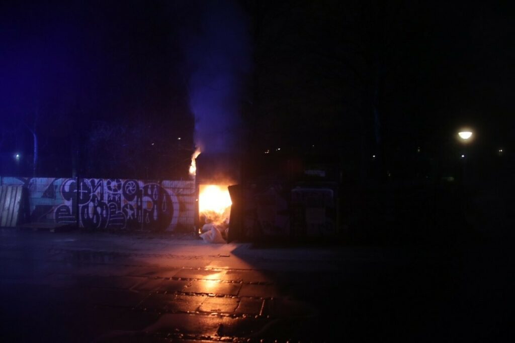 Der opstod sent lørdag aften brand i en tøjcontainer på Enghave Plads i København.