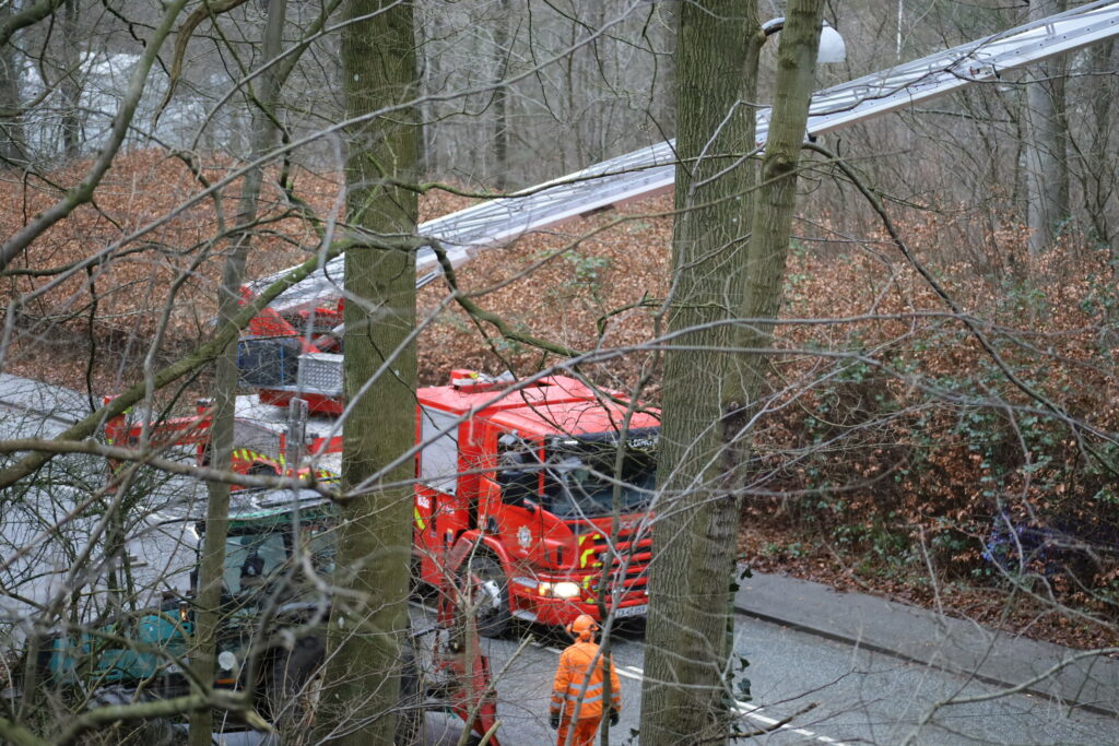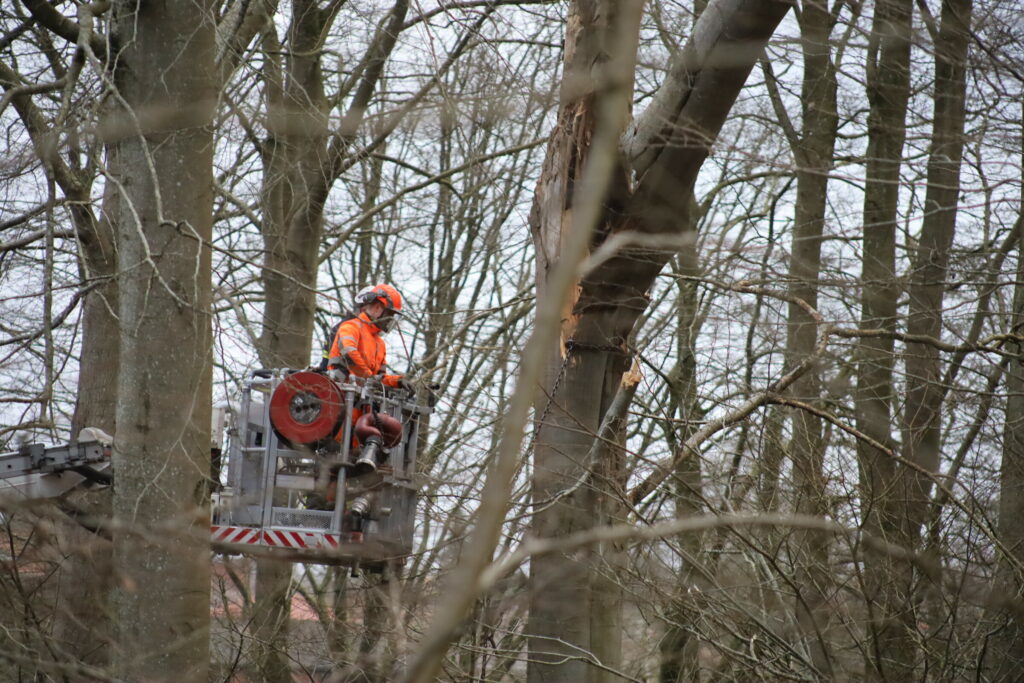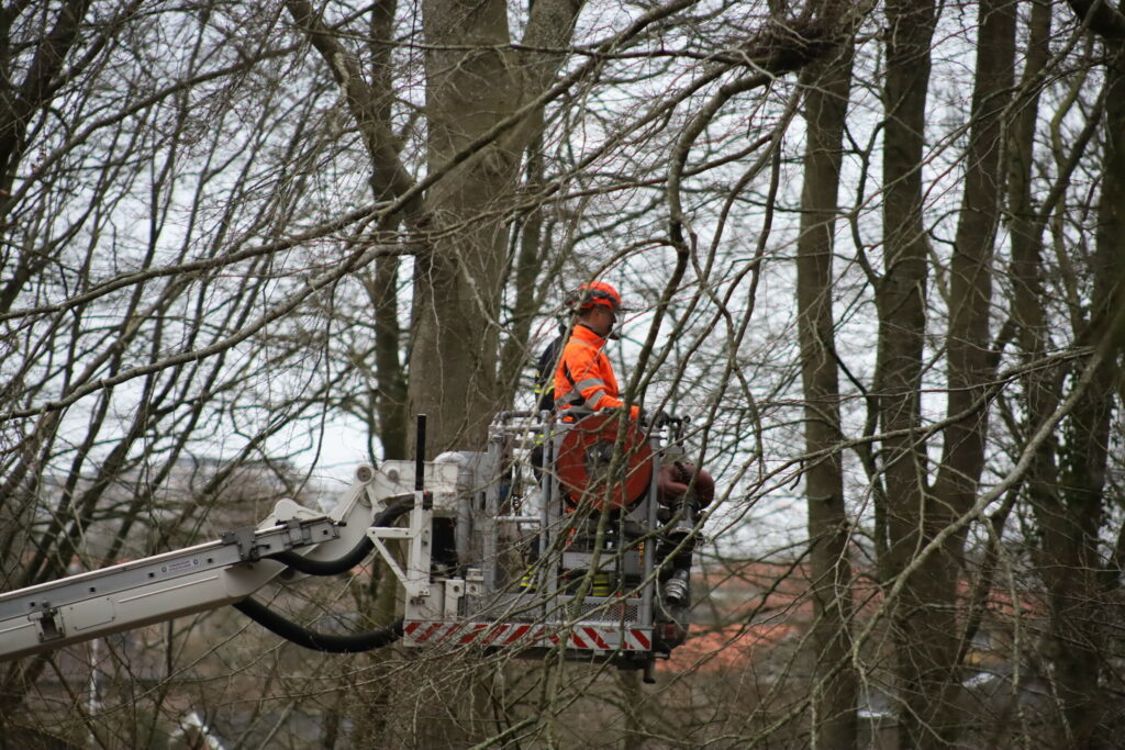 En lift blev tilkaldt, så brandvæsnet kunne få træet skåret helt ned.