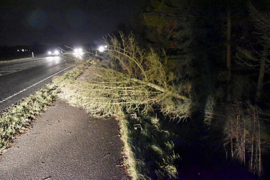 Et mindre træ er på Vejle landevej væltet ud på cykelstien.