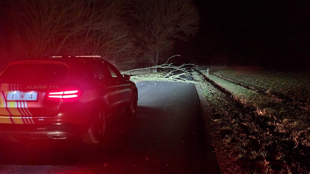 Brandvæsnet er natten til søndag kaldt ud til et væltet træ som spærrer Norddalsvej i Varde.