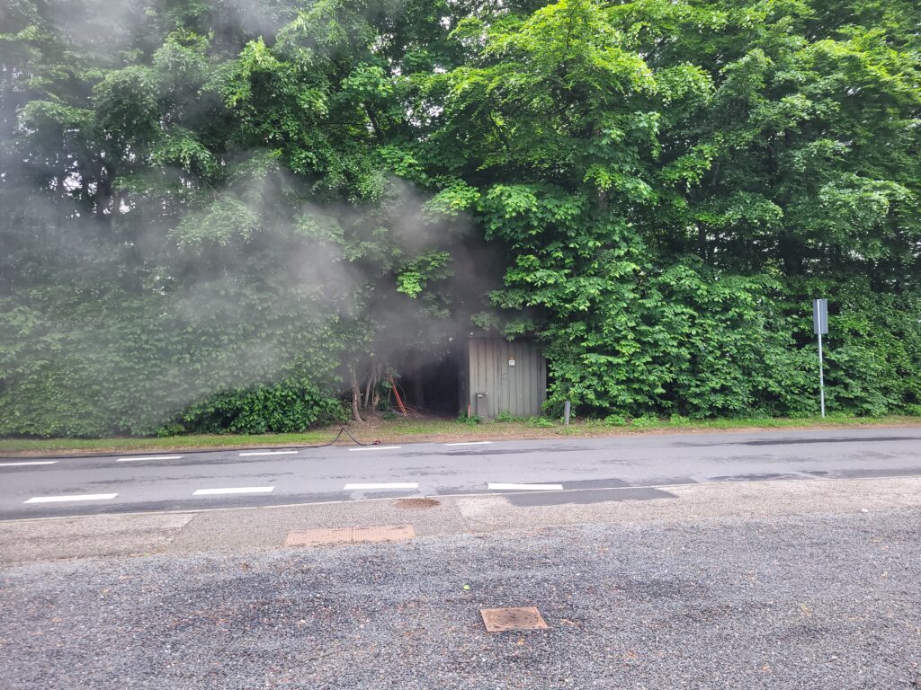 Kl. 14.10 meddelte Syd- og Sønderjyllands Politi på Twitter, at branden var slukket, men at cirka 50 husstande fremdeles var uden strøm.