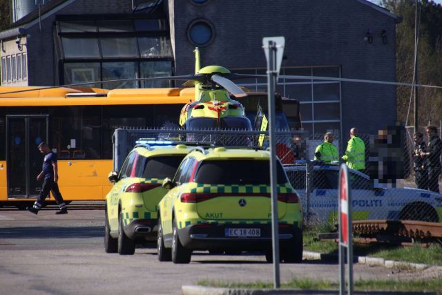 Ambulancen er til stede for at vurdere skader og transportere eventuelt tilskadekomne til hospitalet.