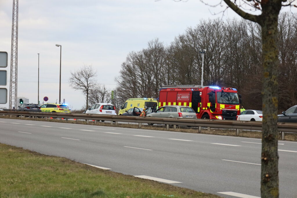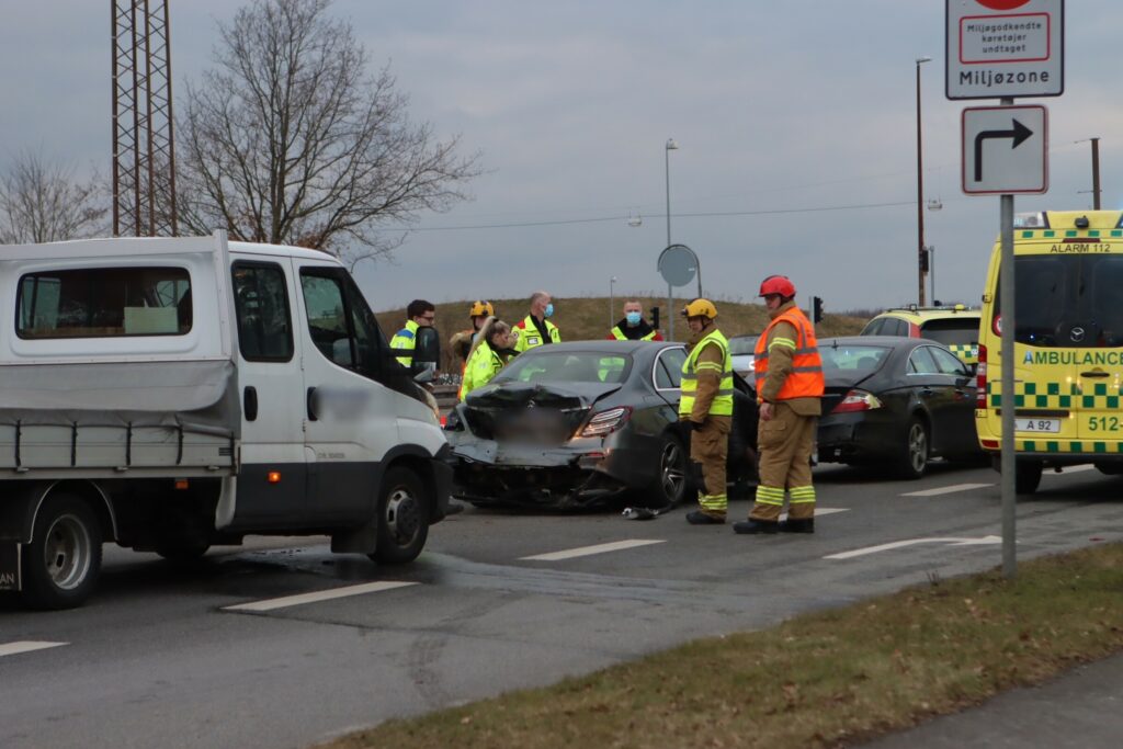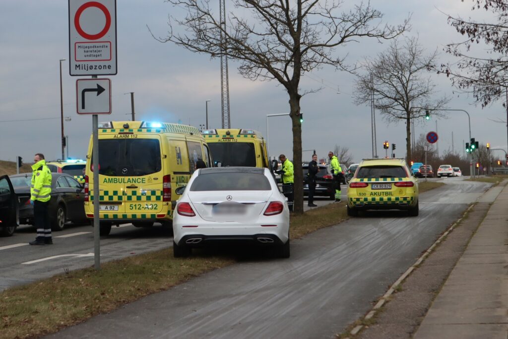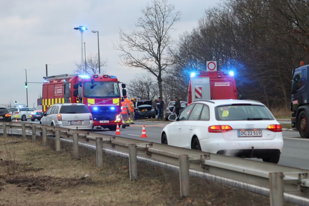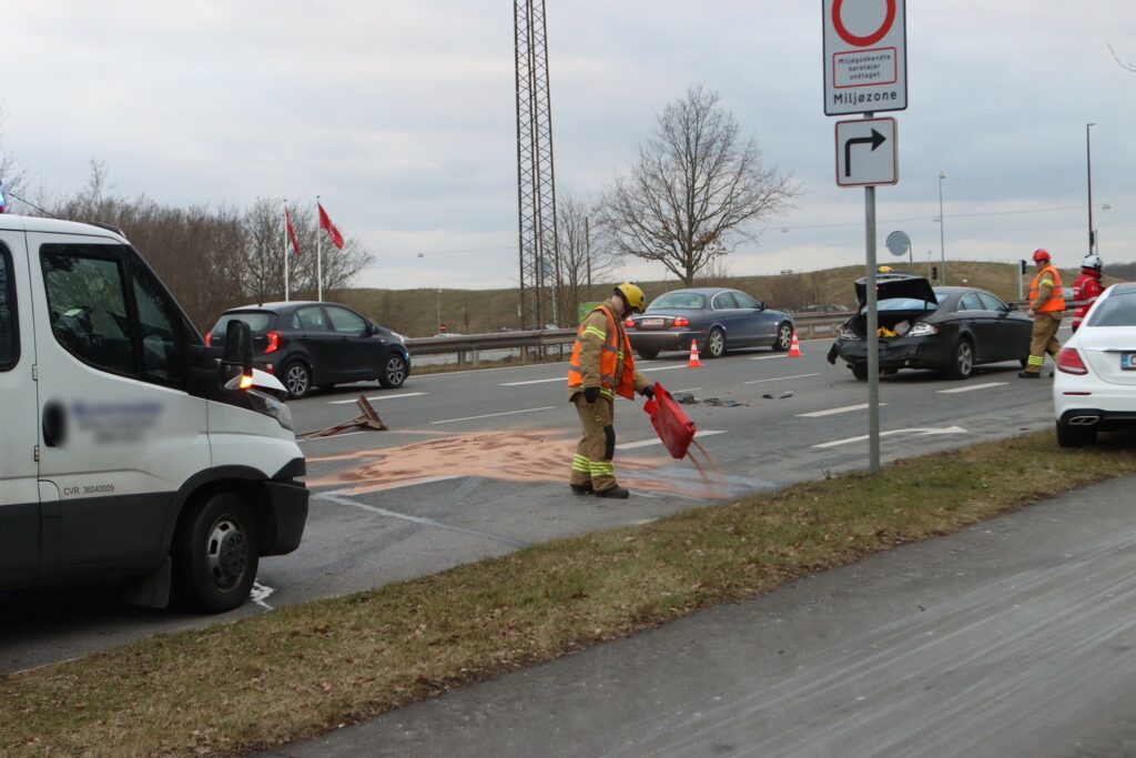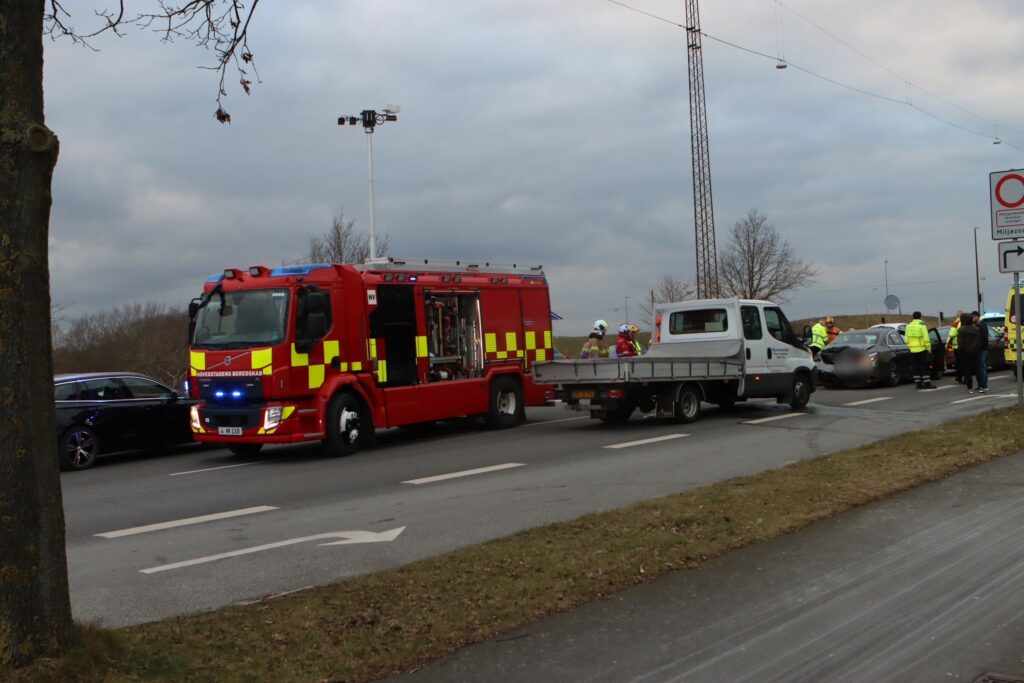 Tre biler er mandag eftermiddag kørt galt på Avedøre Havnevej ved Holbækmotorvejen i Hvidovre.