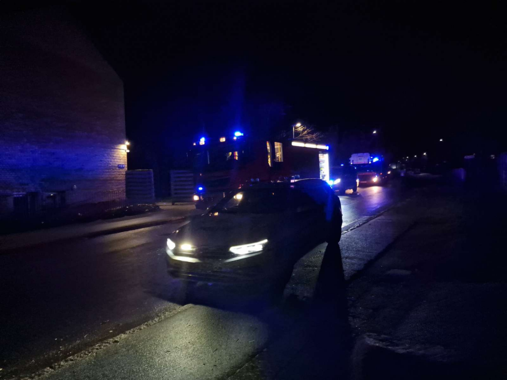 “En mand inde fra lejligheden er gået over i ambulancen med støtte fra redderne. Han var inde i ambulancen omkring et kvarter, og så kørte de afsted herfra med udrykning.”
