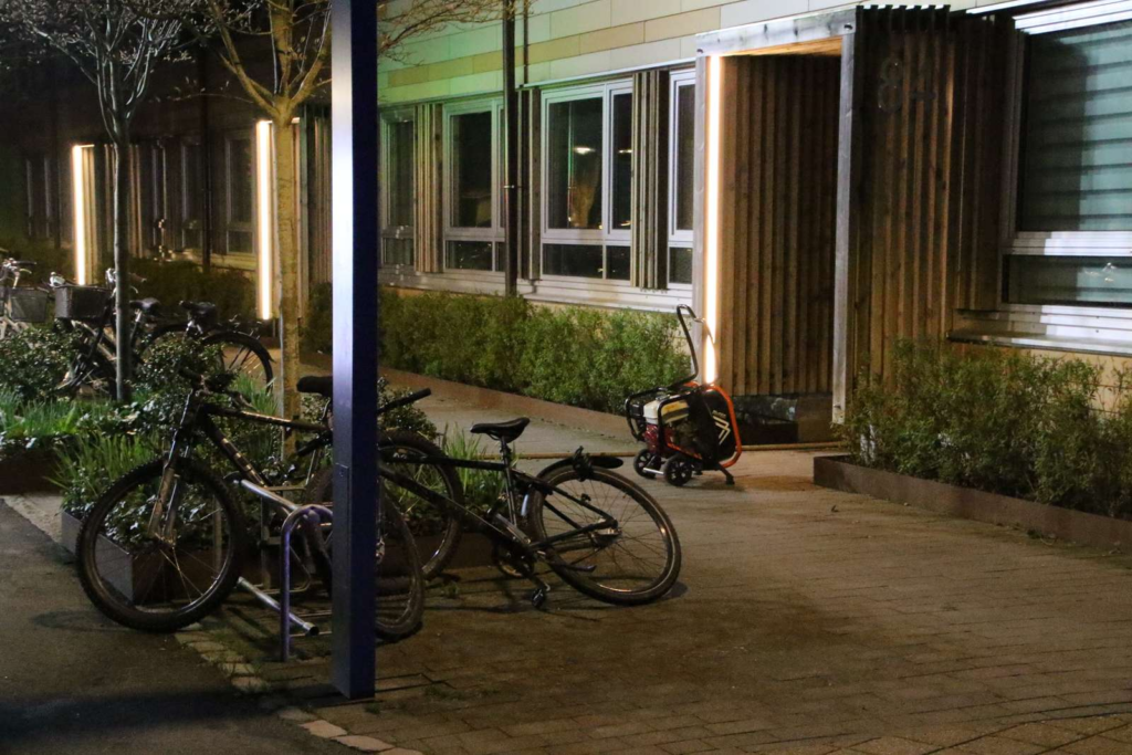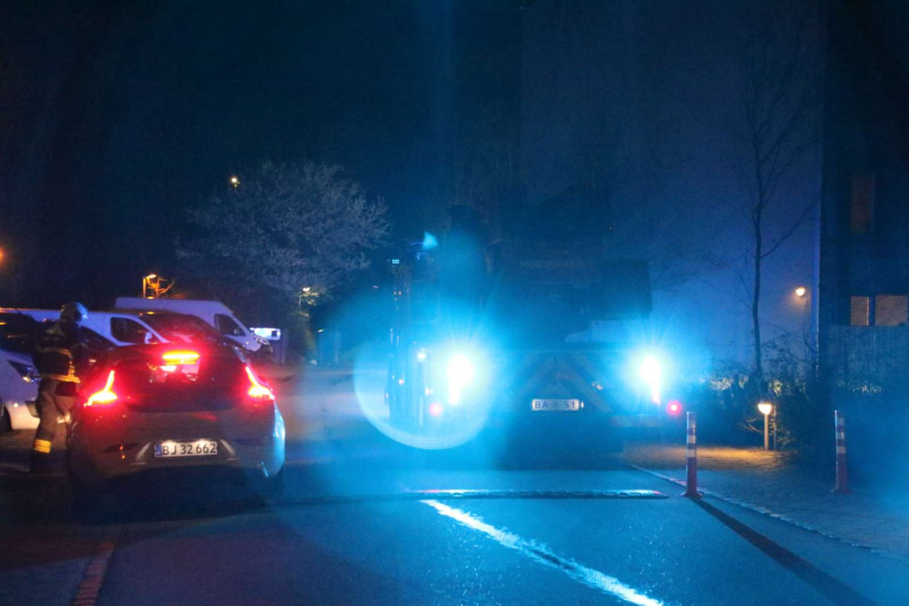 Flere udrykningskøretøjer er ankomme til stedet, hvor der netop er kommet styr på situationen. Der har været tale om en mindre røgudvikling i en opgang på Rugvænget i Ballerup.