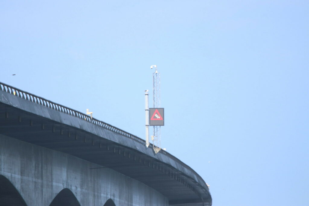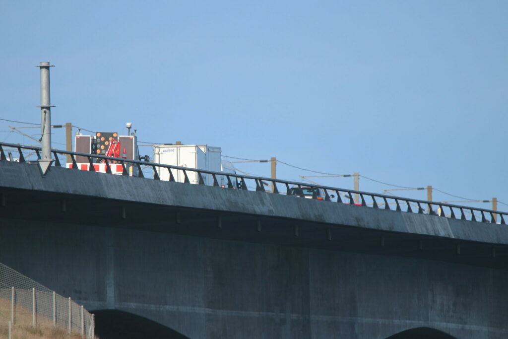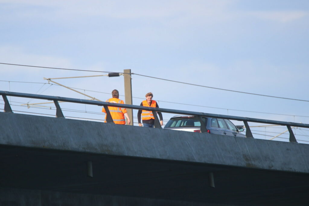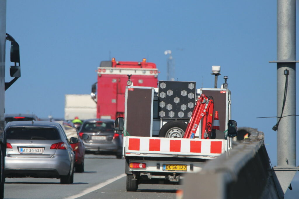 En skilte-vogn er på stedet.