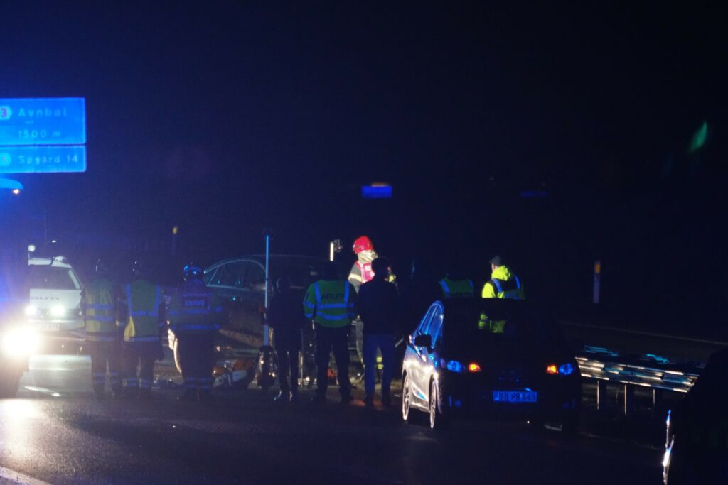 Uheldet betyder, at kun ét spor er farbart lige nu. Uheldet er sket i venstre spor.